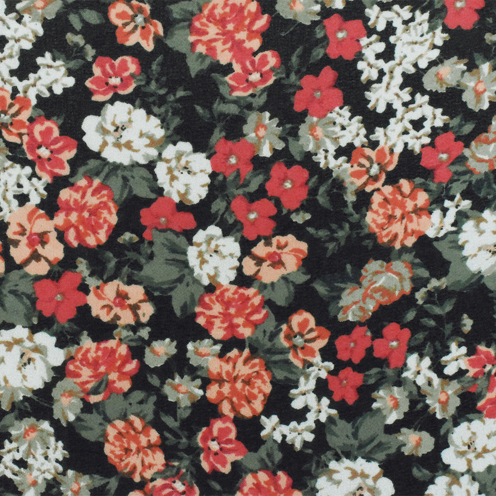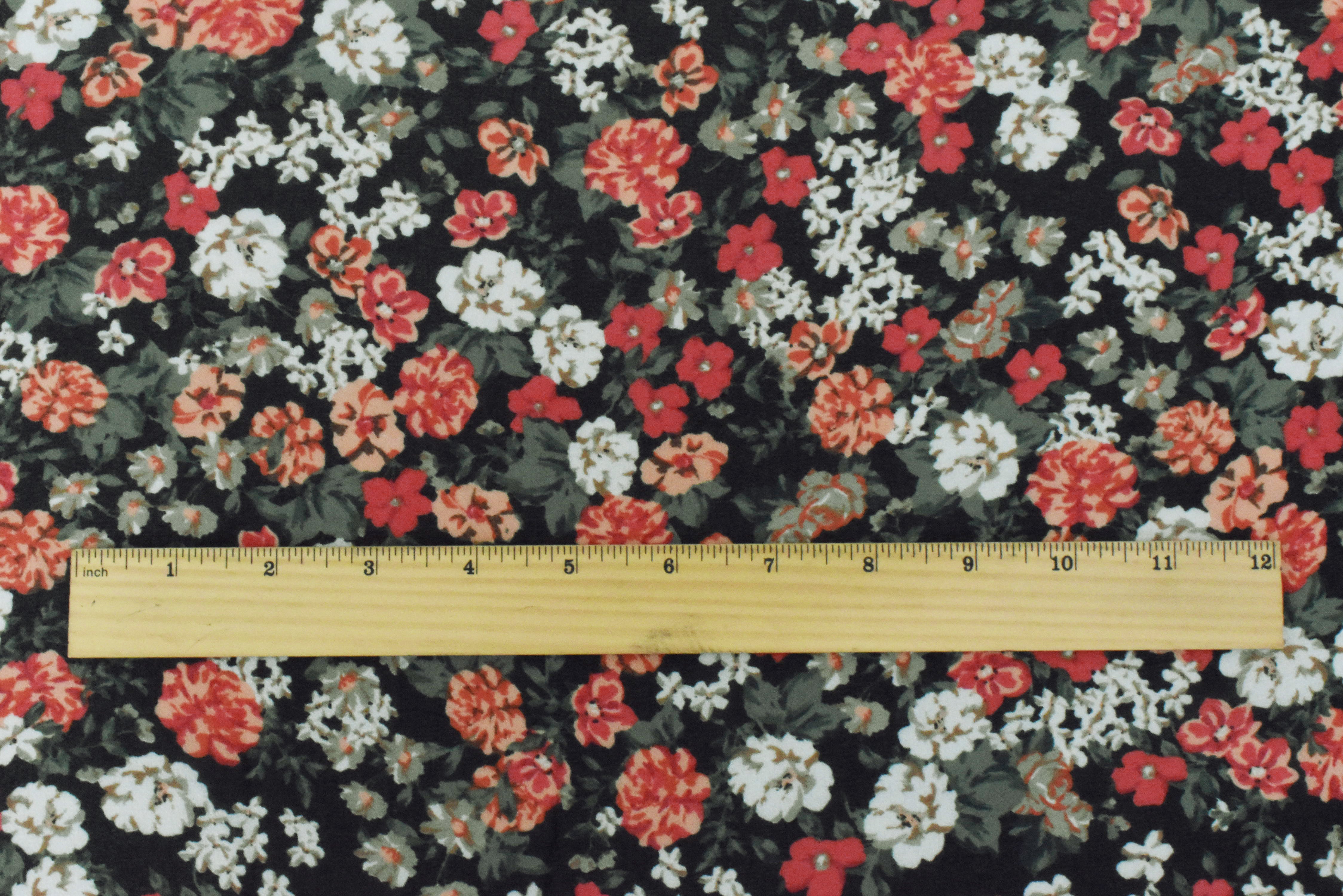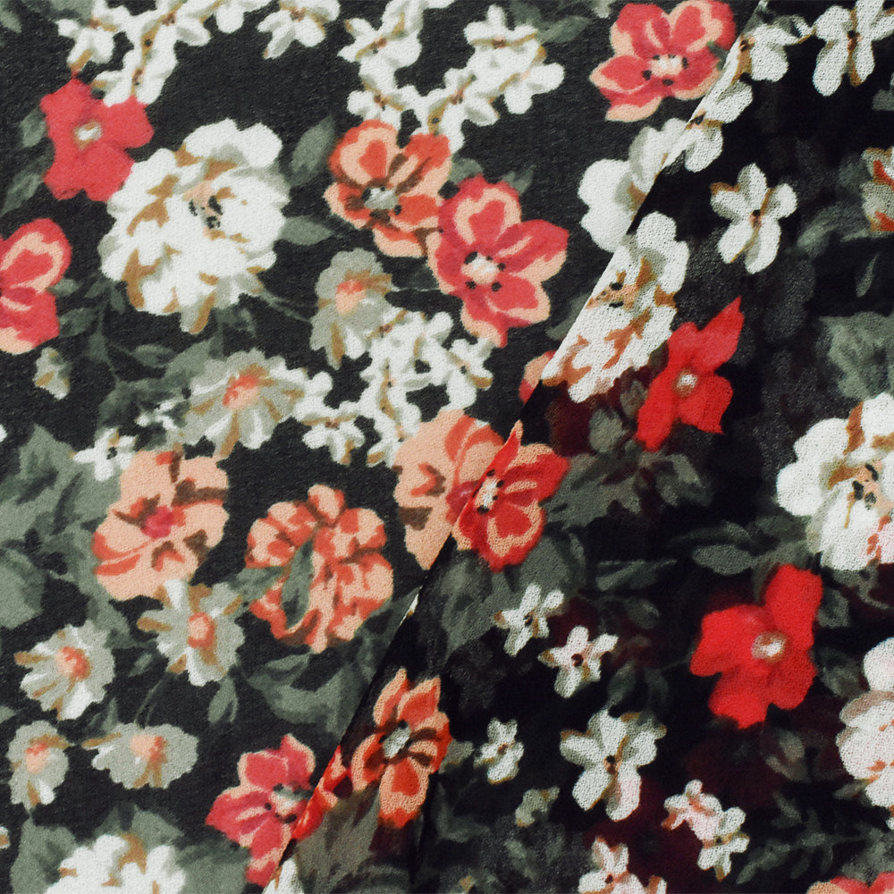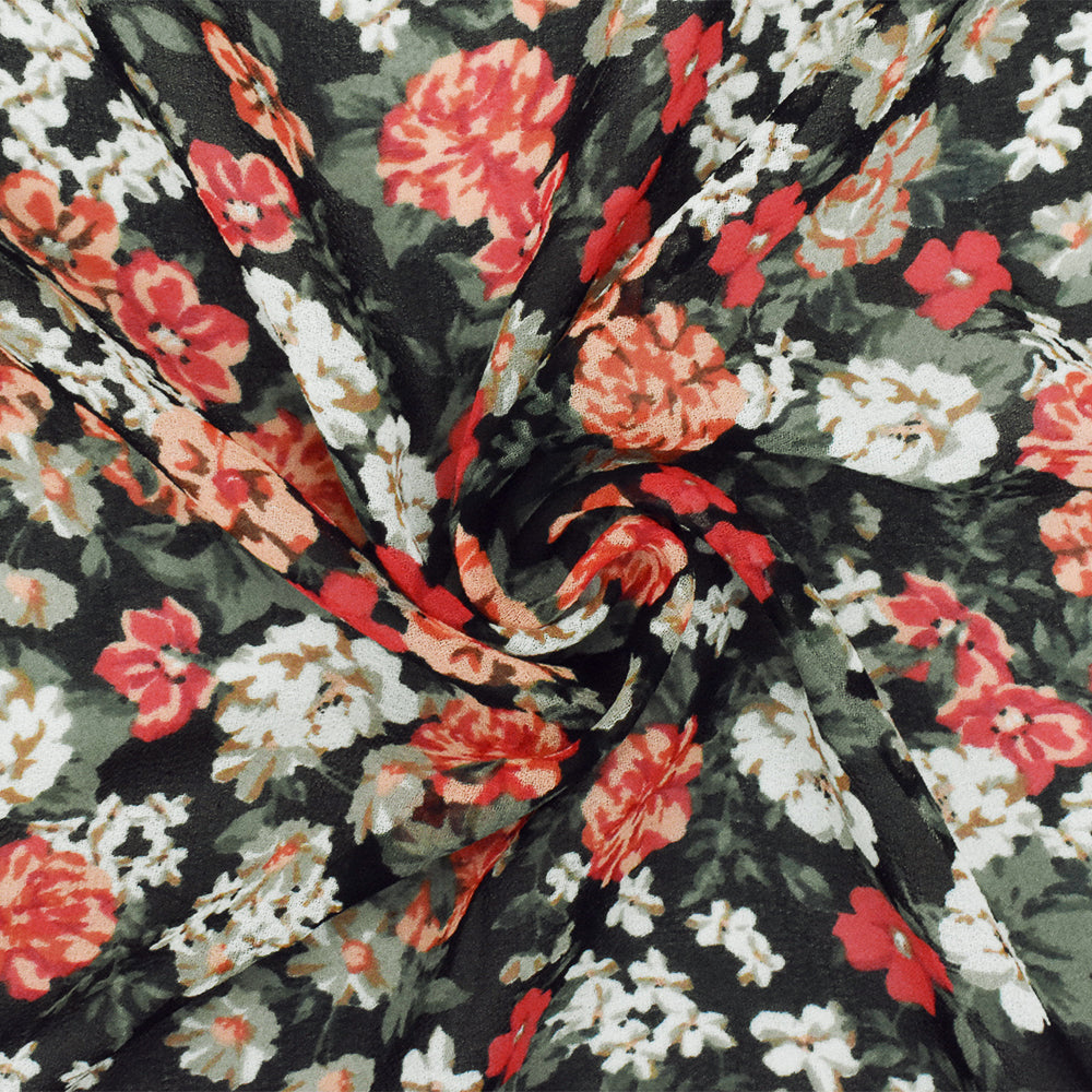 Black-Red-Multi Floral Printed Poly Chiffon Woven Fabric