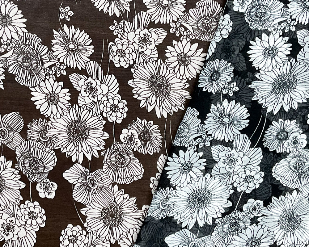 Black-White Poly Floral Printed Chiffon Woven Fabric
