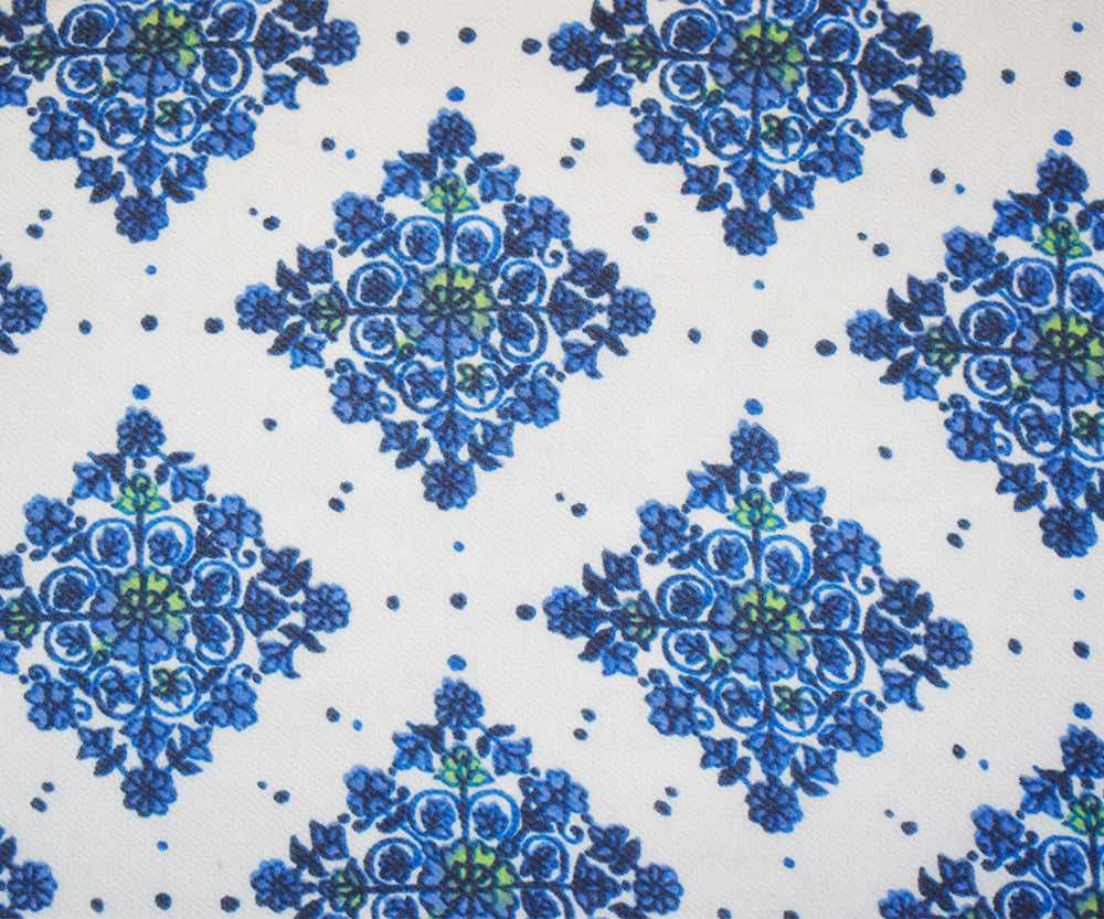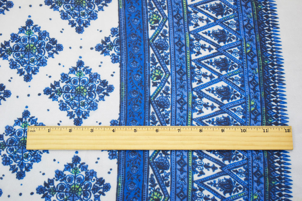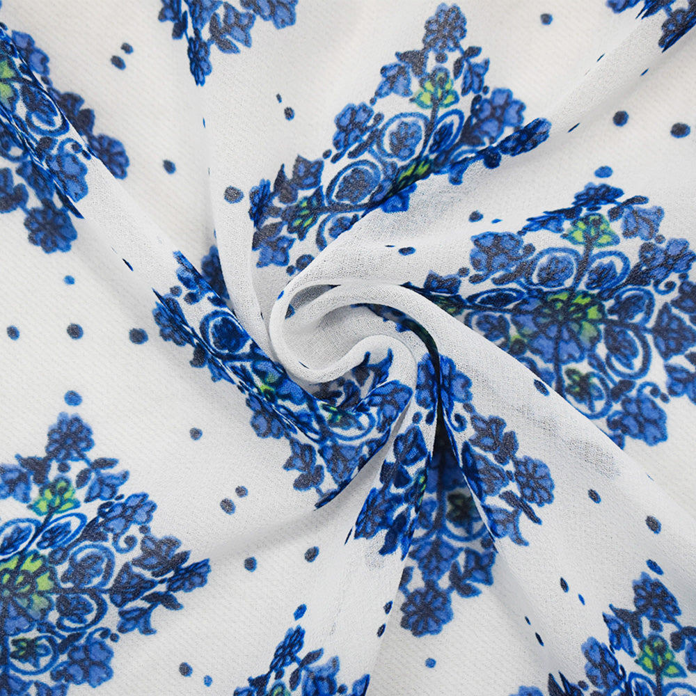 Blue-Green-White Poly Border Printed Chiffon Woven Fabric