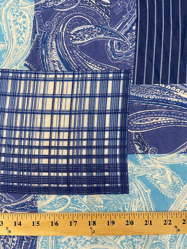 Blue Patchwork Print Chiffon Fabric