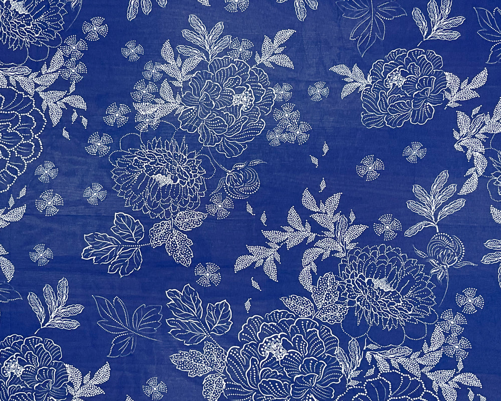 -Blue-White Poly Floral Printed Chiffon Woven Fabric