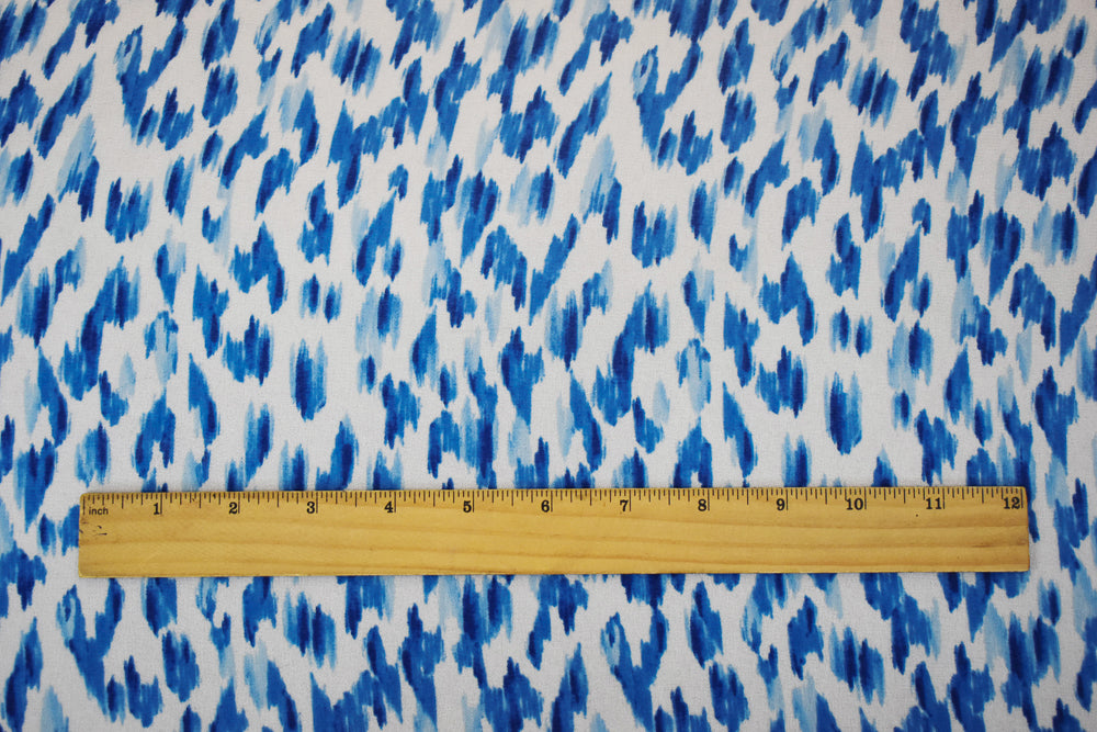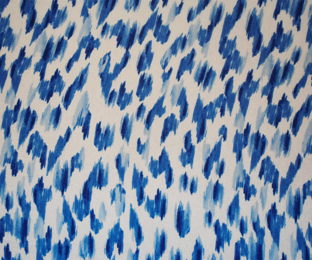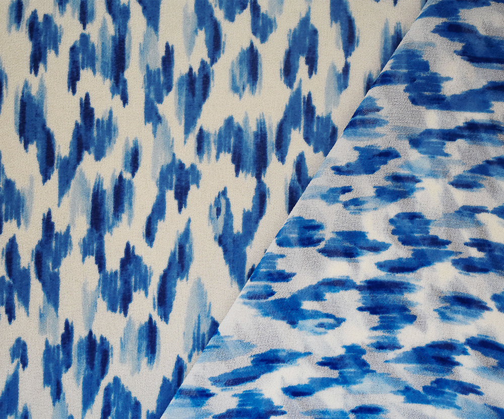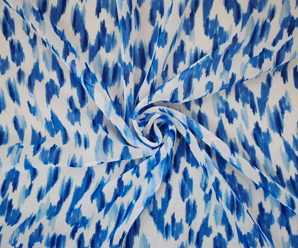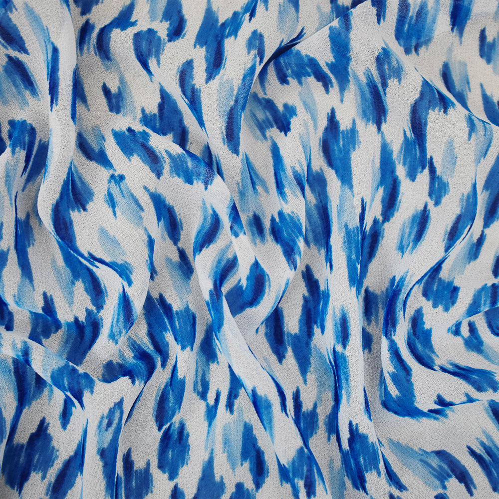 Blue-White Watercolor Ikat Pattern Printed Pebble Chiffon Fabric