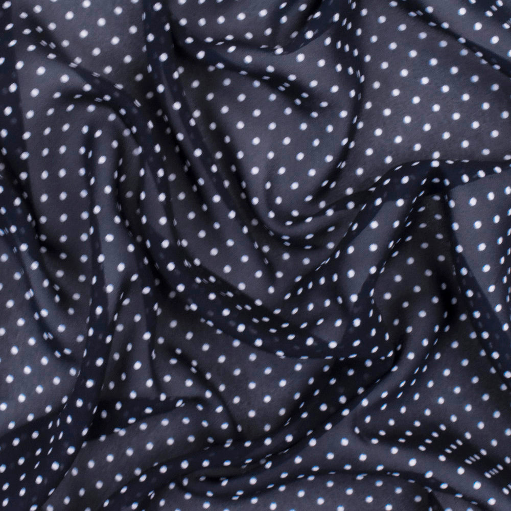 Dark Blue-White Dot Printed Polyester Chiffon Woven Fabric