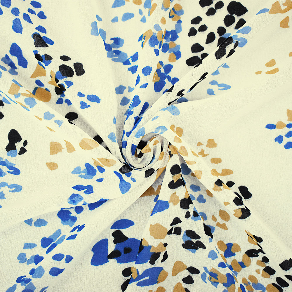 Ivory-Blue-Multi Abstract Spots Printed Poly Chiffon Woven Fabric