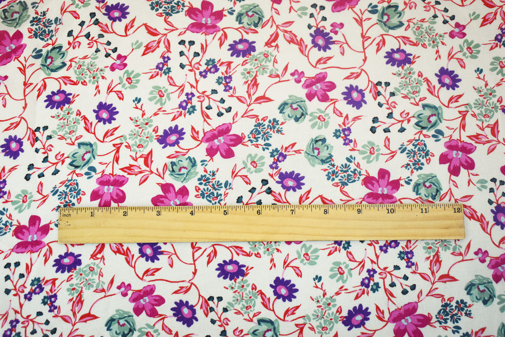 Ivory-Pink-Multi Floral Printed Poly Chiffon Woven Fabric