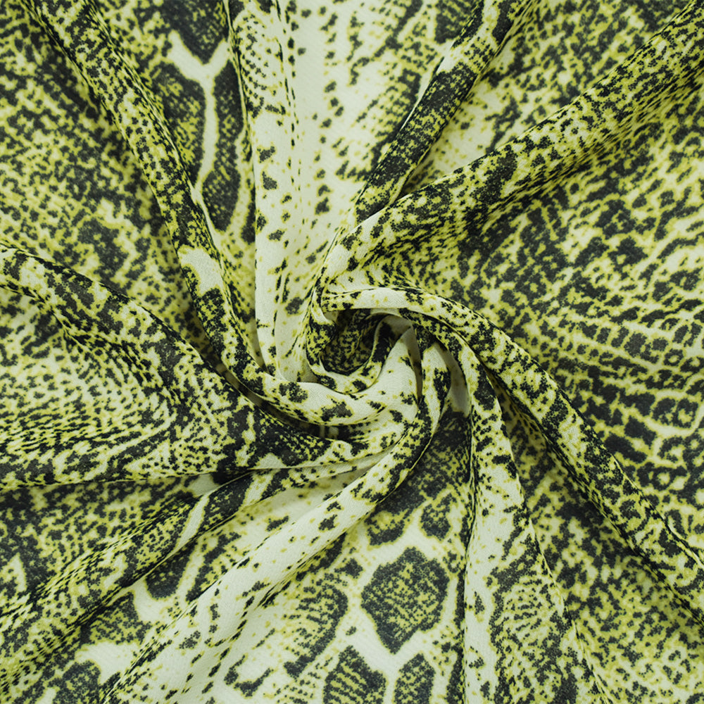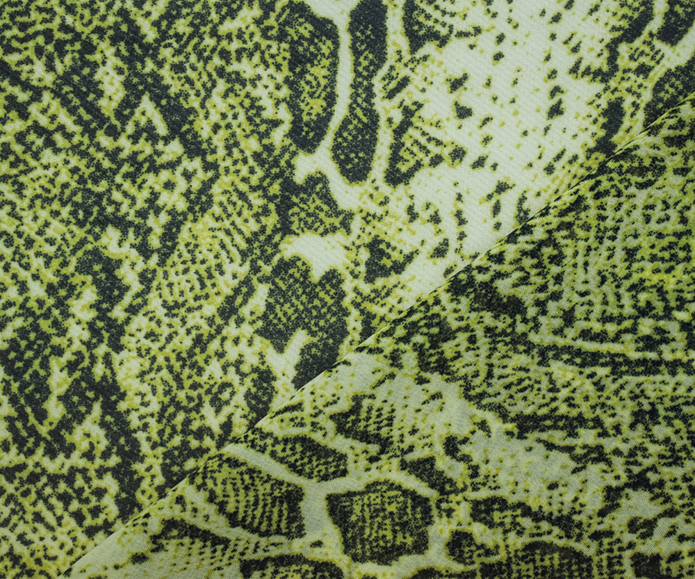 Lime Green-Multi Polyester Reptile Skin Printed Chiffon Fabric