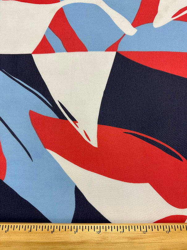 Navy Blue Multi Leaf Print Poly Chiffon Fabric