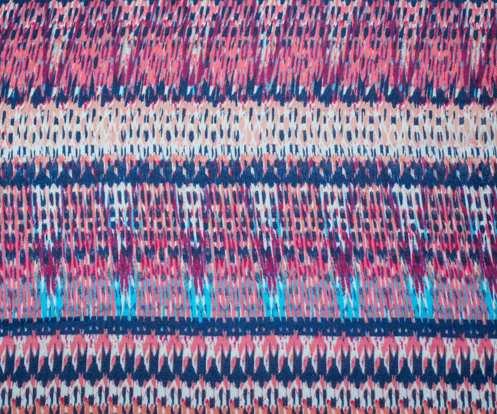 -100% Polyester chiffon printed with an Aztec inspired ikat-like pattern