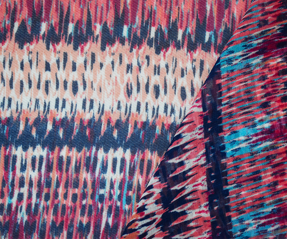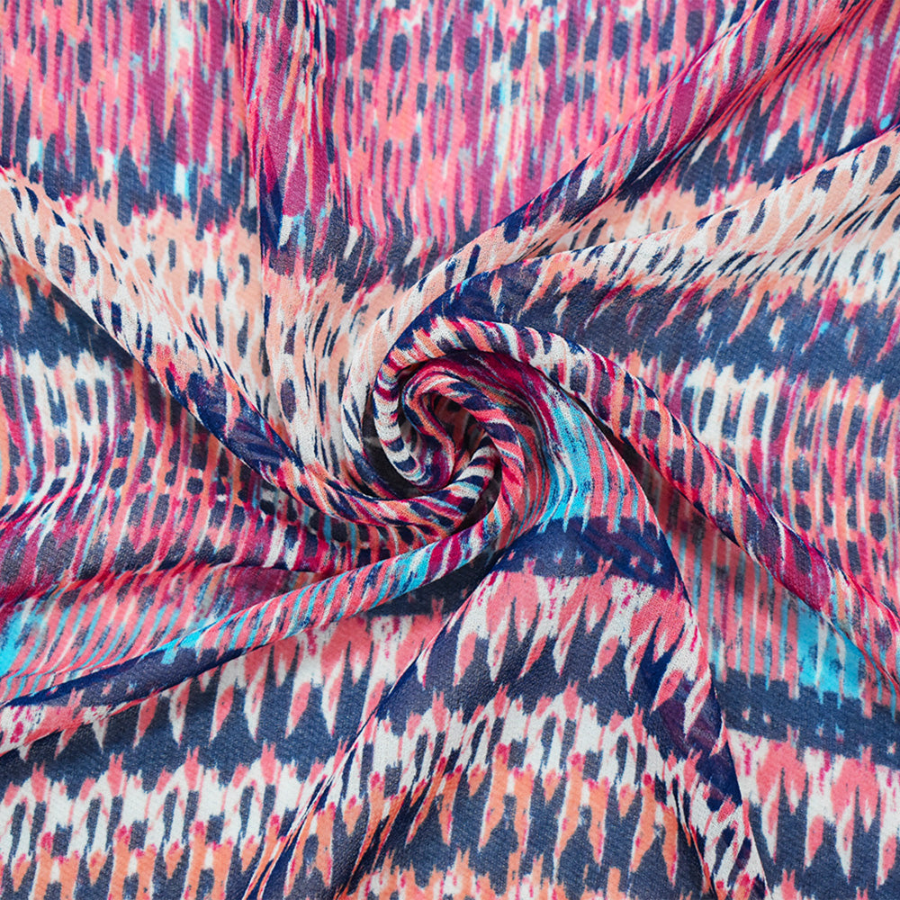 Navy-Coral-Multi Poly Aztec Ikat Printed Chiffon Woven Fabric