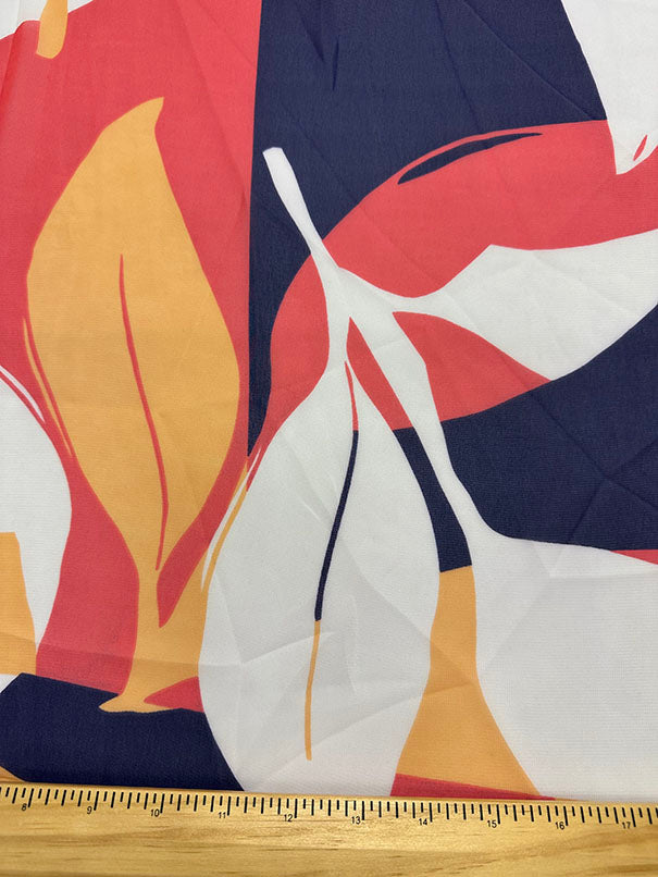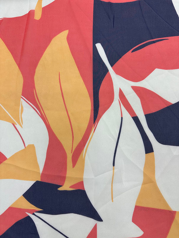 Orange Multi Leaf Print Poly Chiffon Fabric