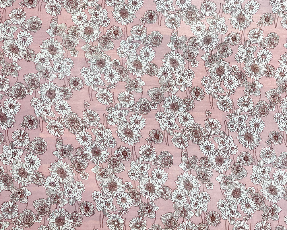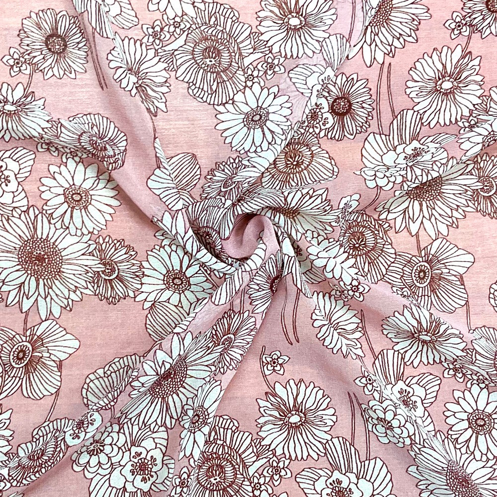 Pink-White-Brown Poly Floral Printed Chiffon Woven Fabric