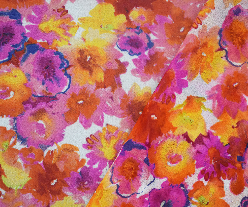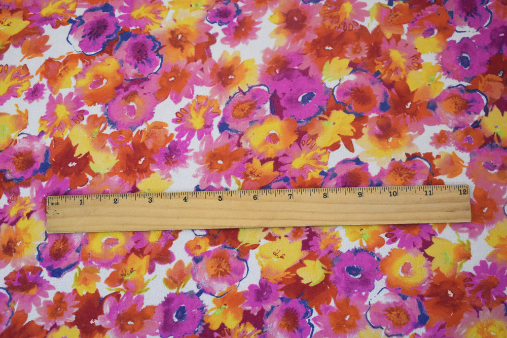 Pink-Yellow-Multi Floral Printed Poly Chiffon Woven Fabric