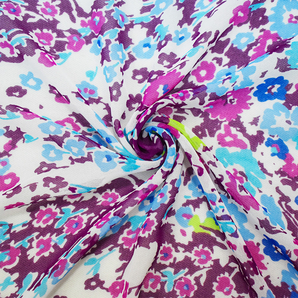 Purple-Blue-Multi Polyester Floral Printed Chiffon Woven Fabric