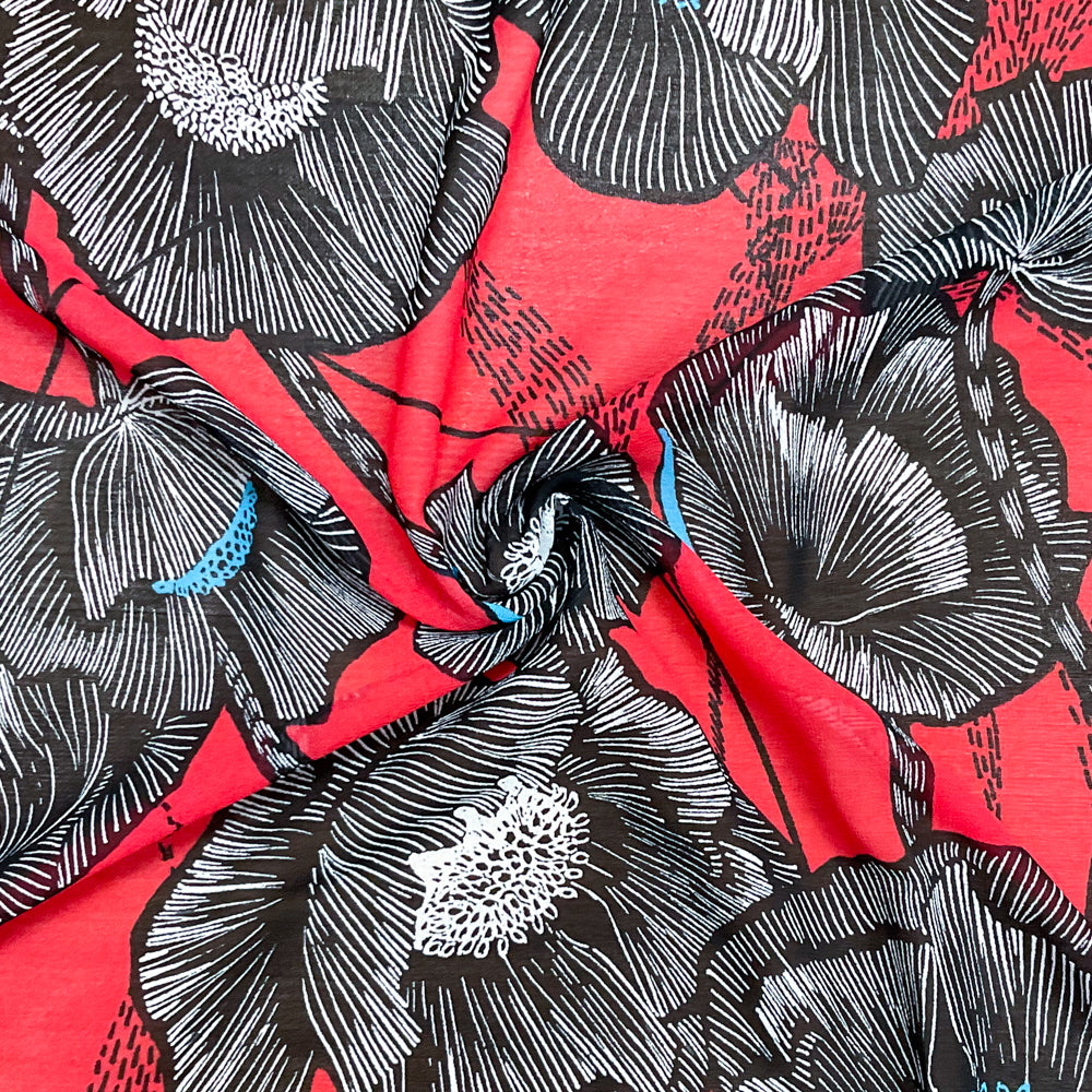 Red-Black-Multi Poly Floral Printed Chiffon Woven Fabric
