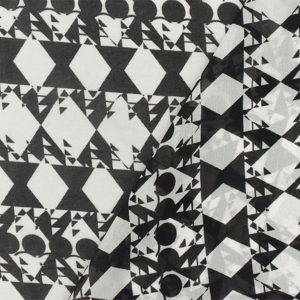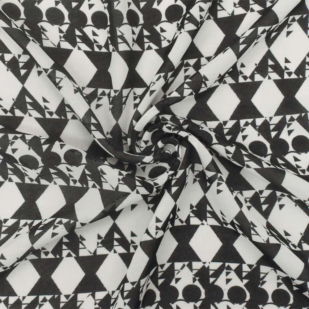 Spade Black-White Abstract Geometric Printed Poly Chiffon Woven Fabric