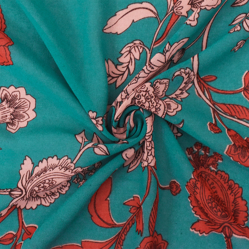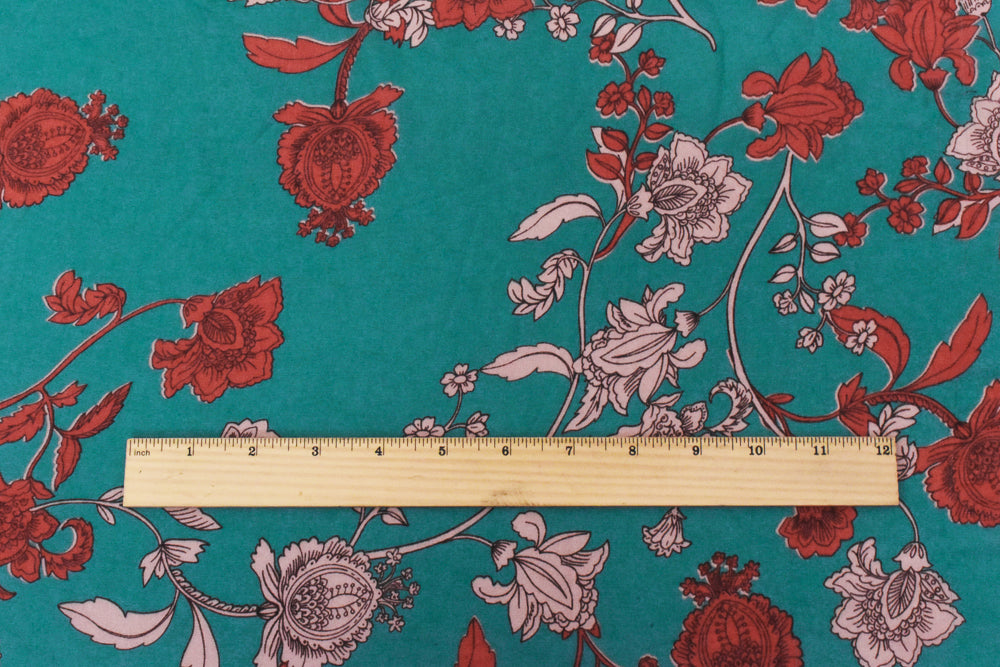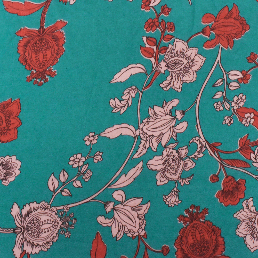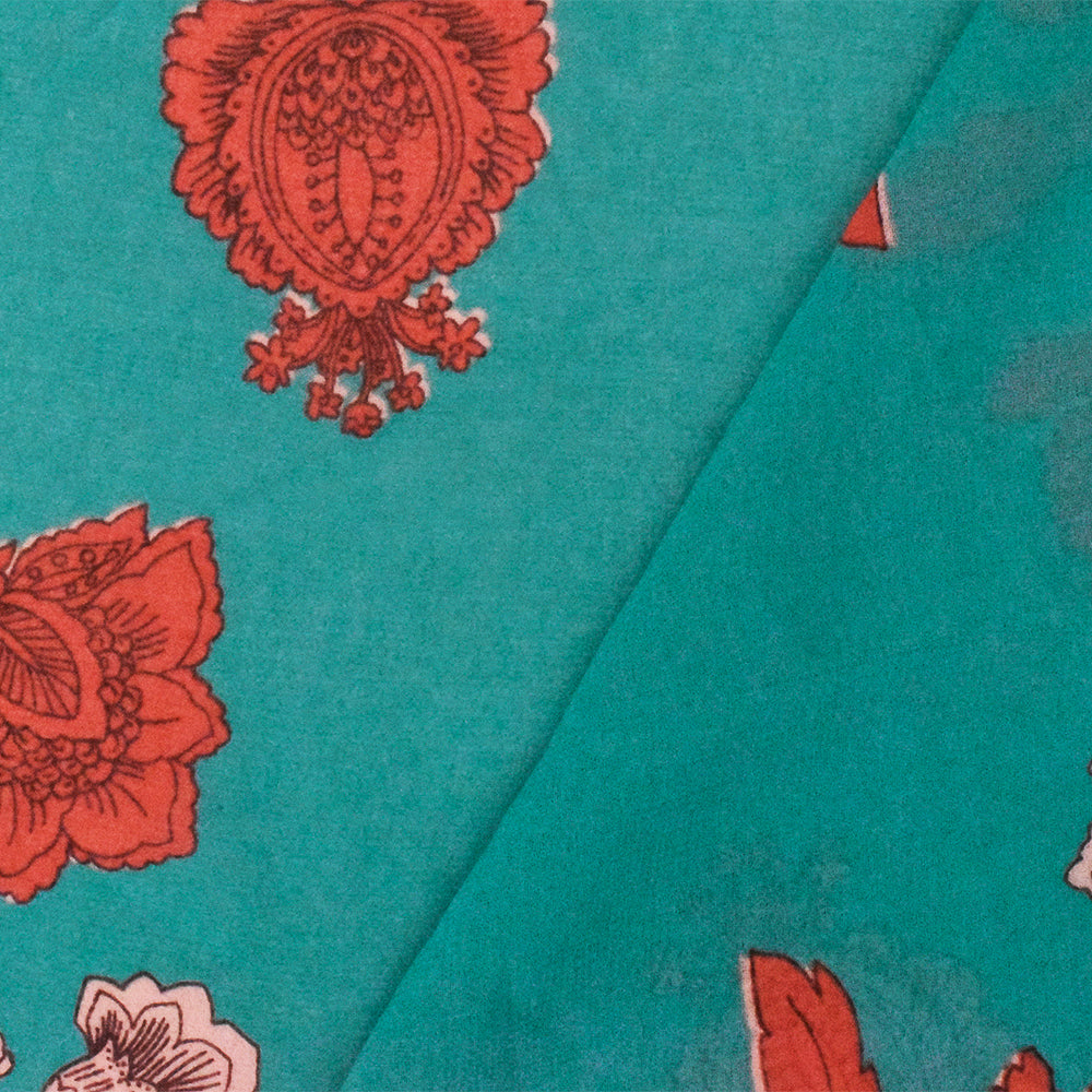 Teal-Red Floral Printed Poly Chiffon Woven Fabric