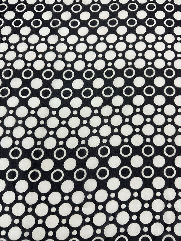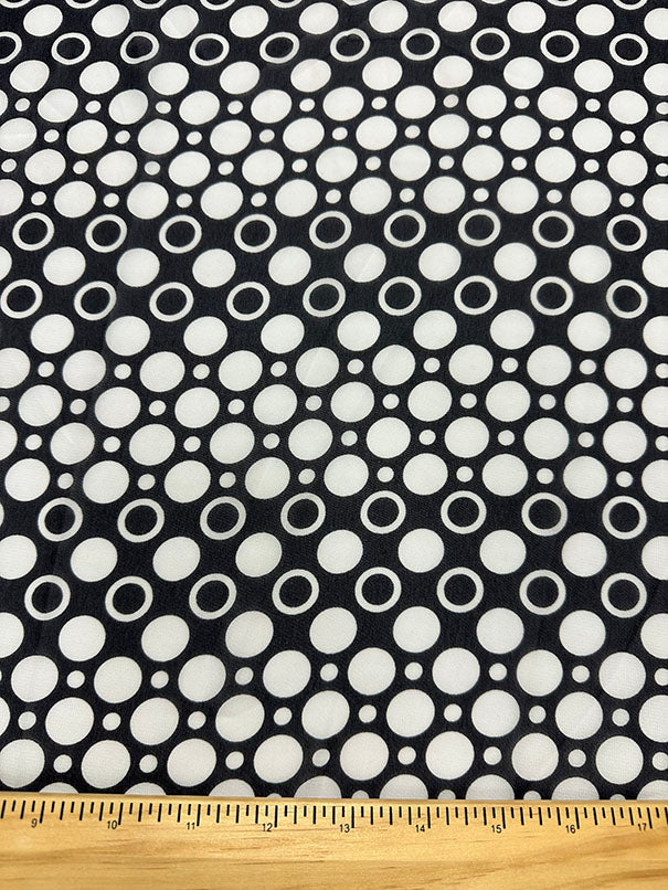-White Dot Print on Black Sheer Poly Chiffon Fabric