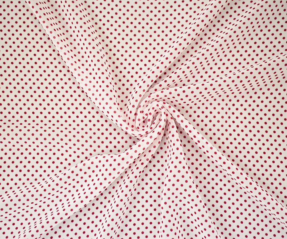White-Red Polka Dots Printed Poly Chiffon Woven Fabric