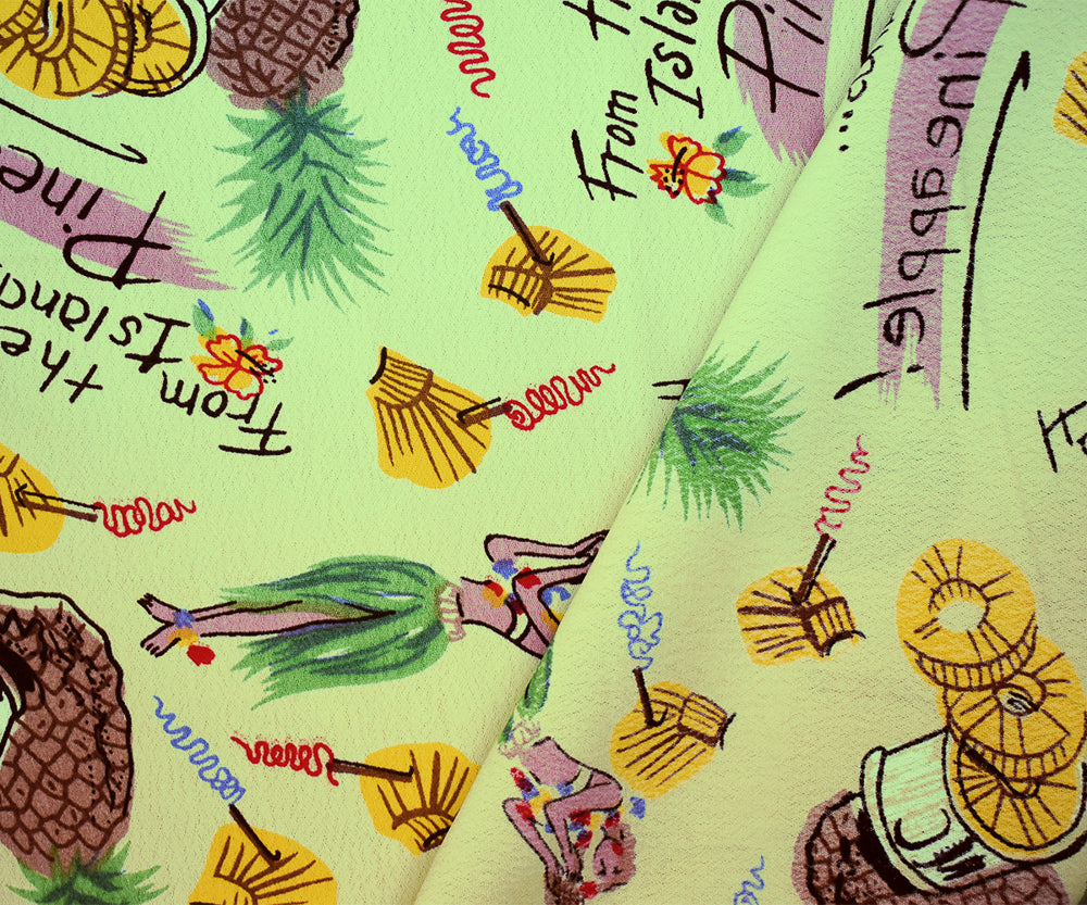 Light Green-Pink-Multi Hawaiian Theme Printed Rayon Crepe Faille Woven Fabric