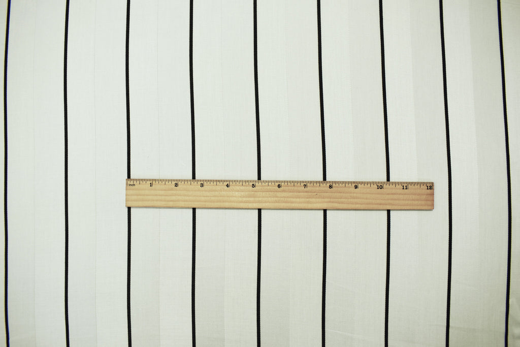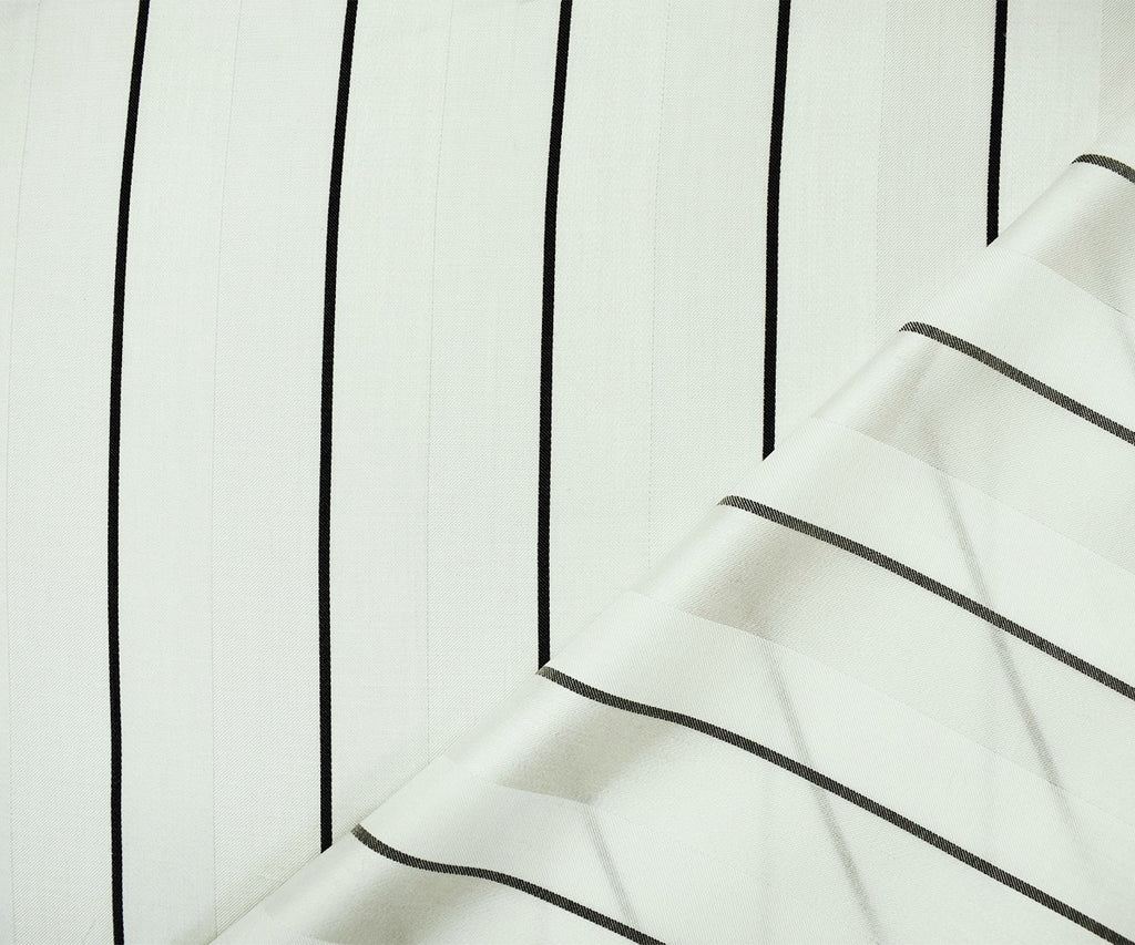Ivory-Black Rayon-Cotton Famous Maker Vertical Stripe Woven Suiting Fabric