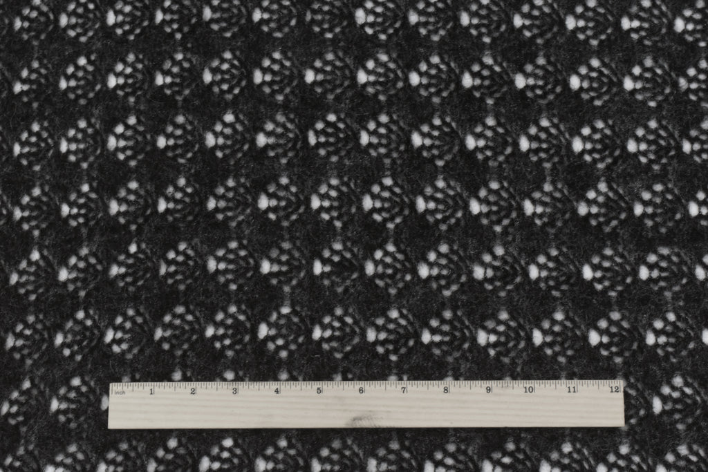 Ash Gray-Black Texture Polyester Wool Raschel Crochet Knit Fabric