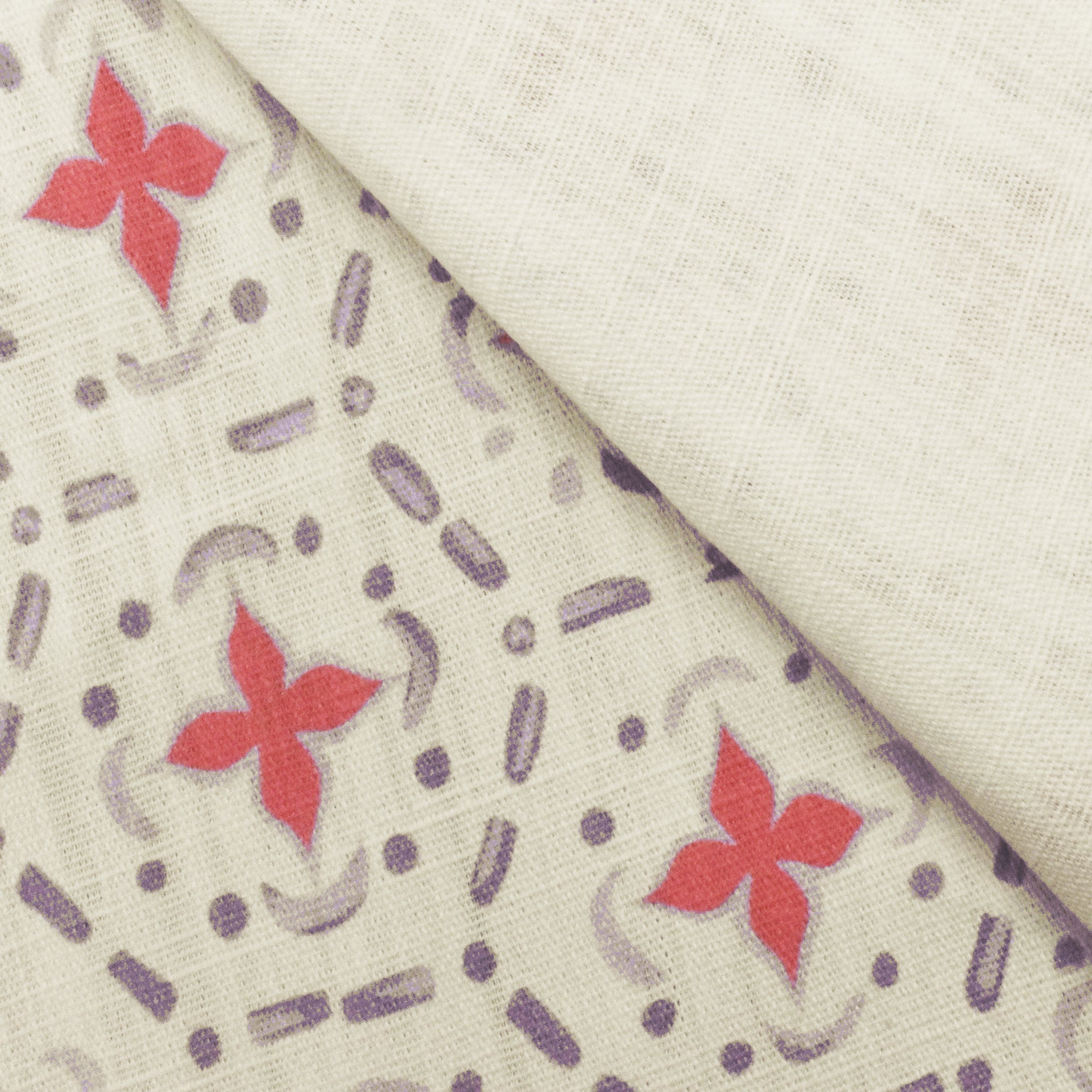 Purple-Cora-ivory Abstract Tile Printed Slub Home Decorating Fabric