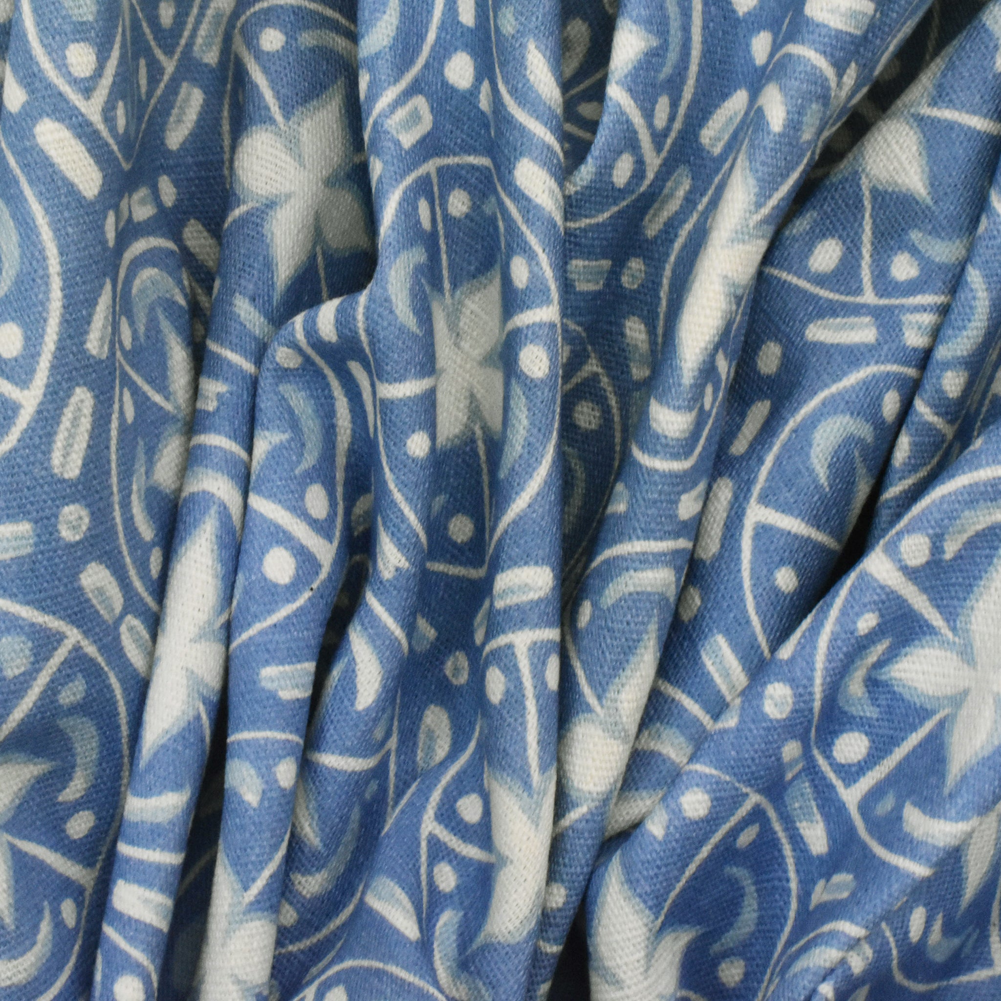 Winter Blue-Ivory Abstract Tile Printed Slub Home Decorating Fabric