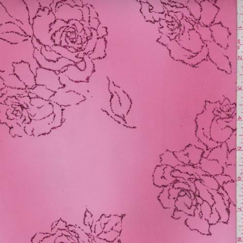 -Ombre look polyester chiffon in shades of hot pink with a dark pink metallic glitter floral design