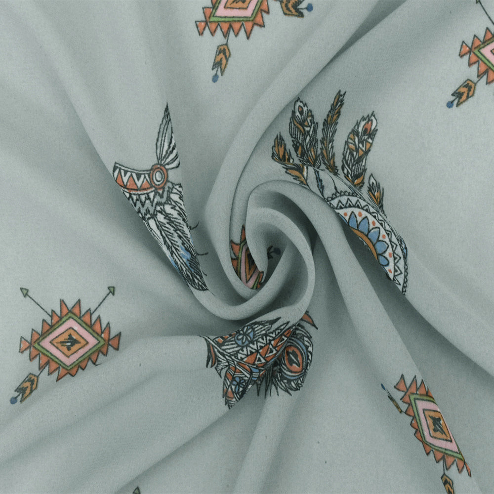 -Famous designer 100% polyester chiffon fabric printed with dreamcatcher and tribal-like elements