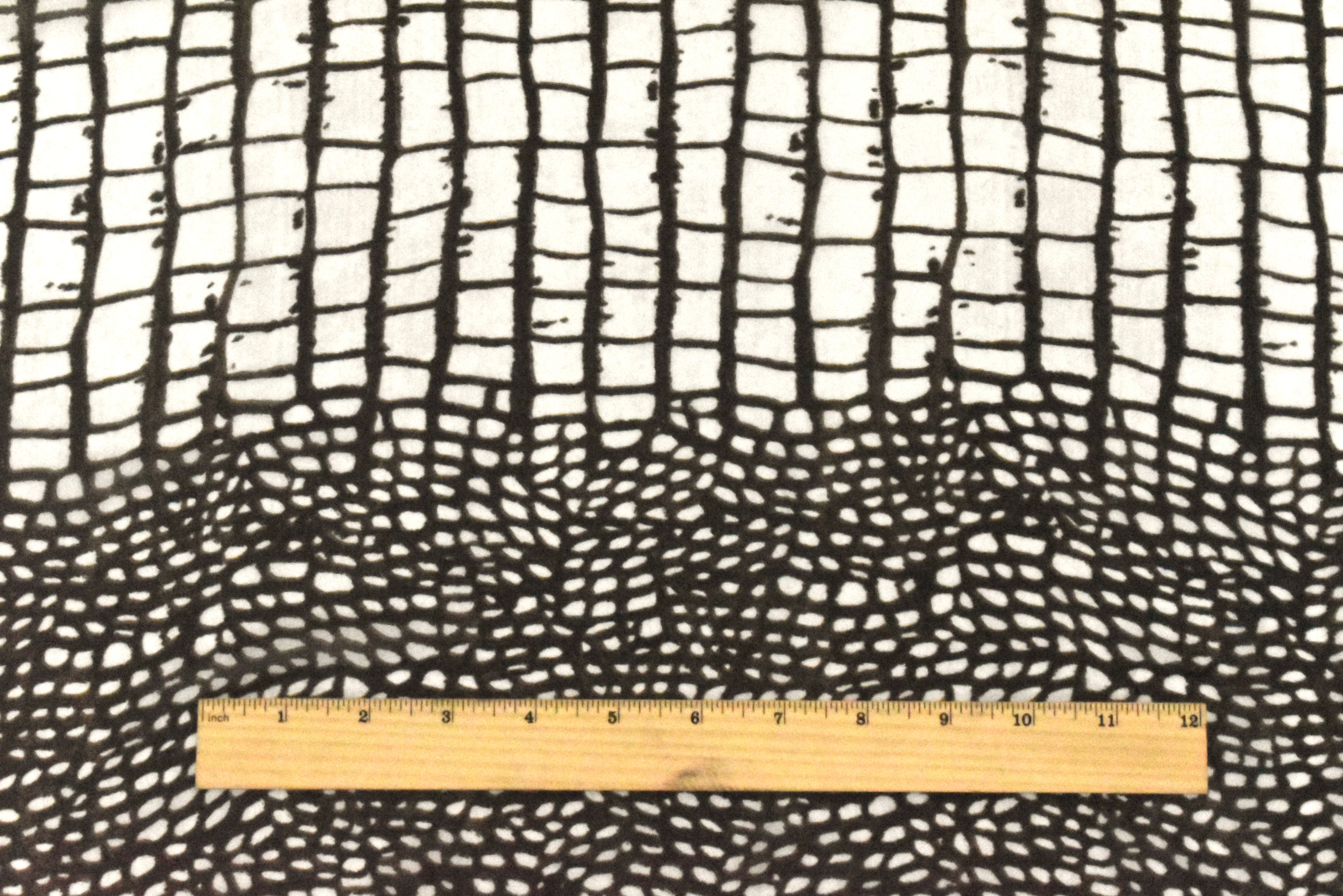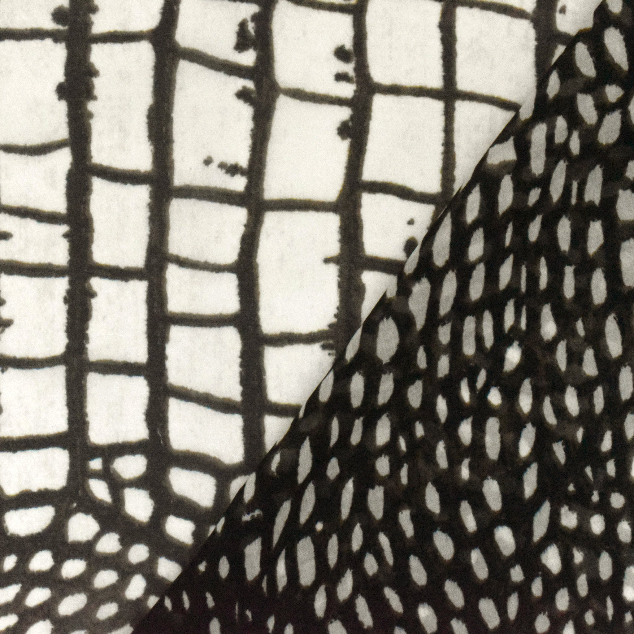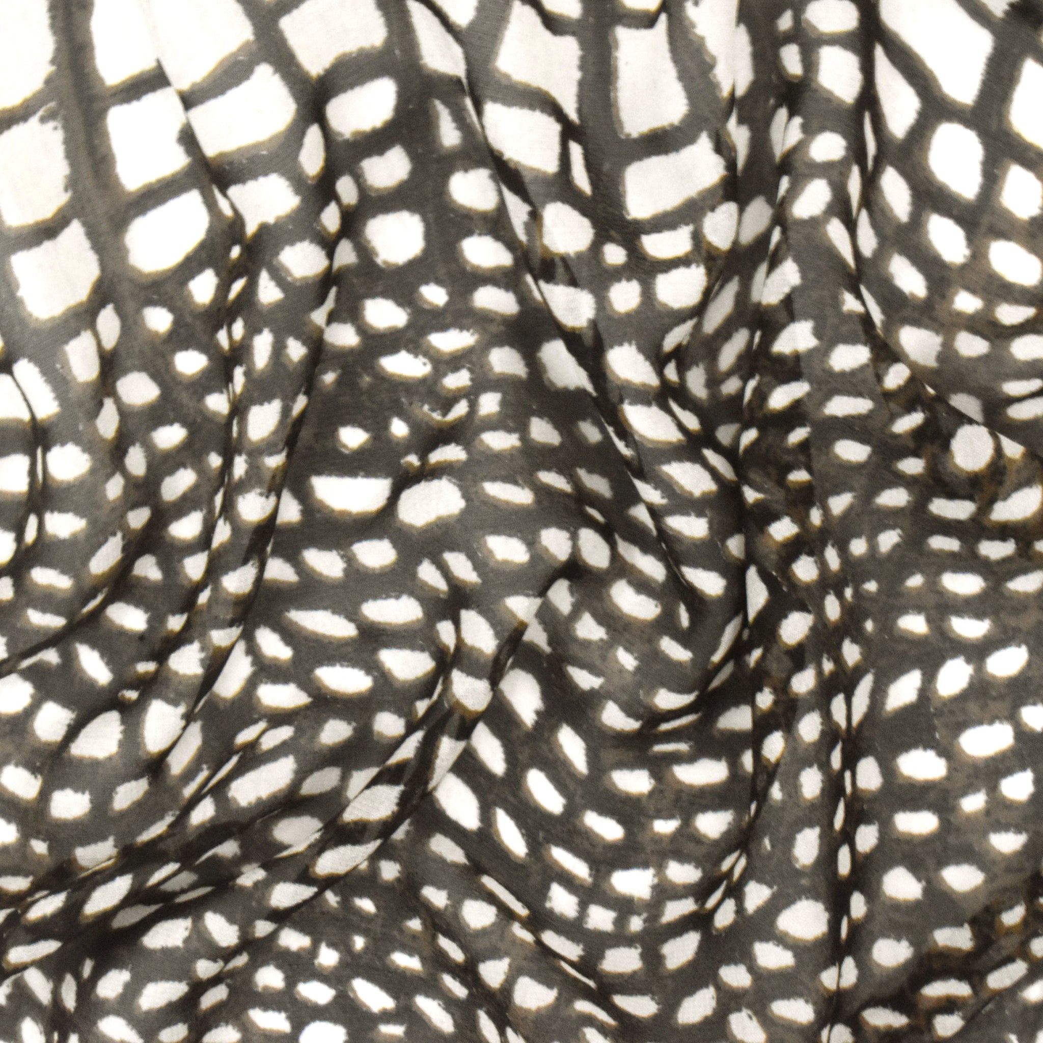 Black-Brown-Ivory Reptile Pattern Printed Silk Chiffon Fabric