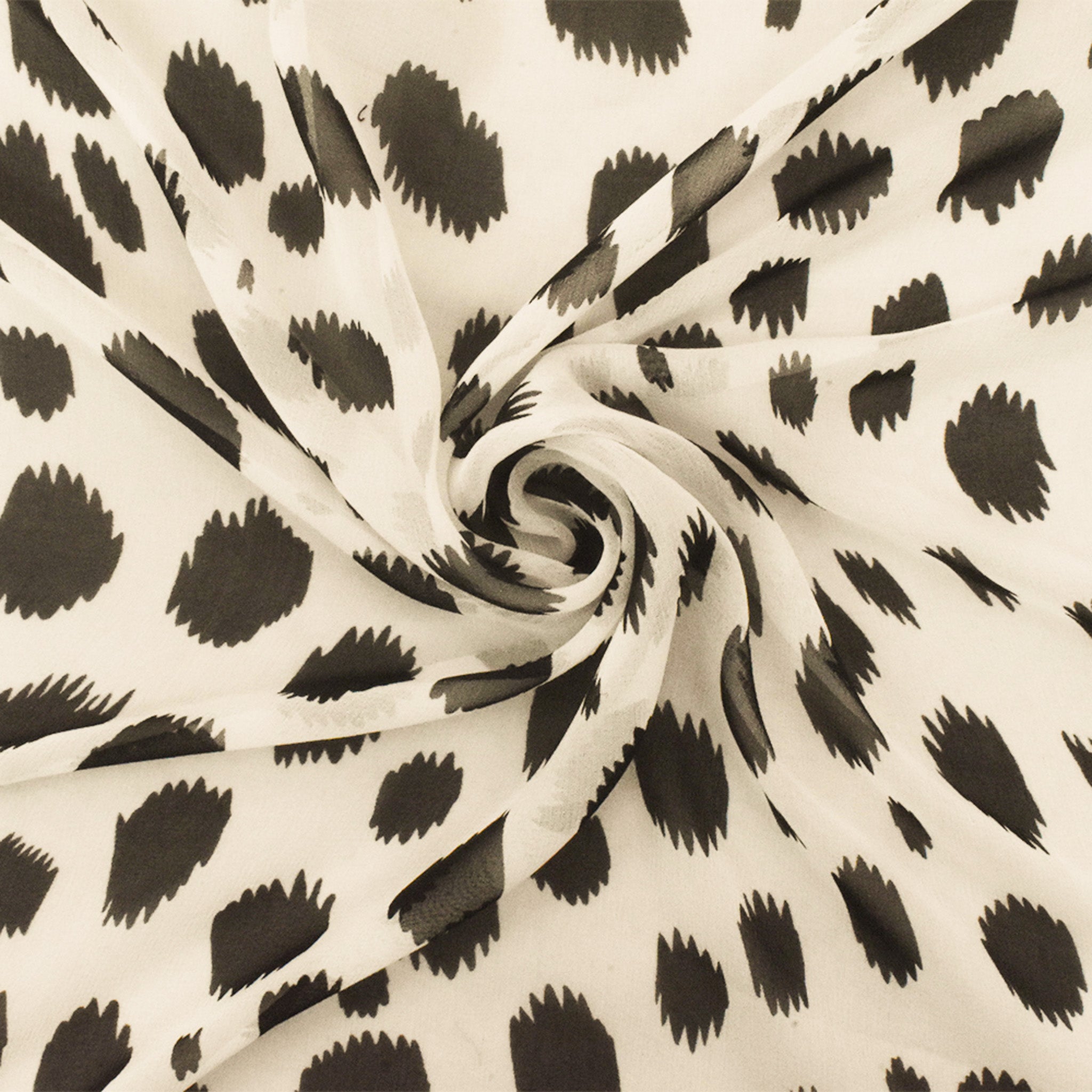 Black-Ivory Famous Designer Silk Spots Printed Chiffon Fabric