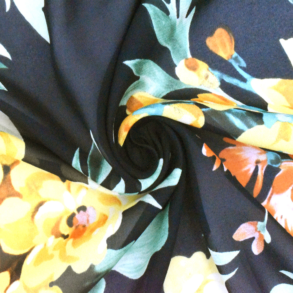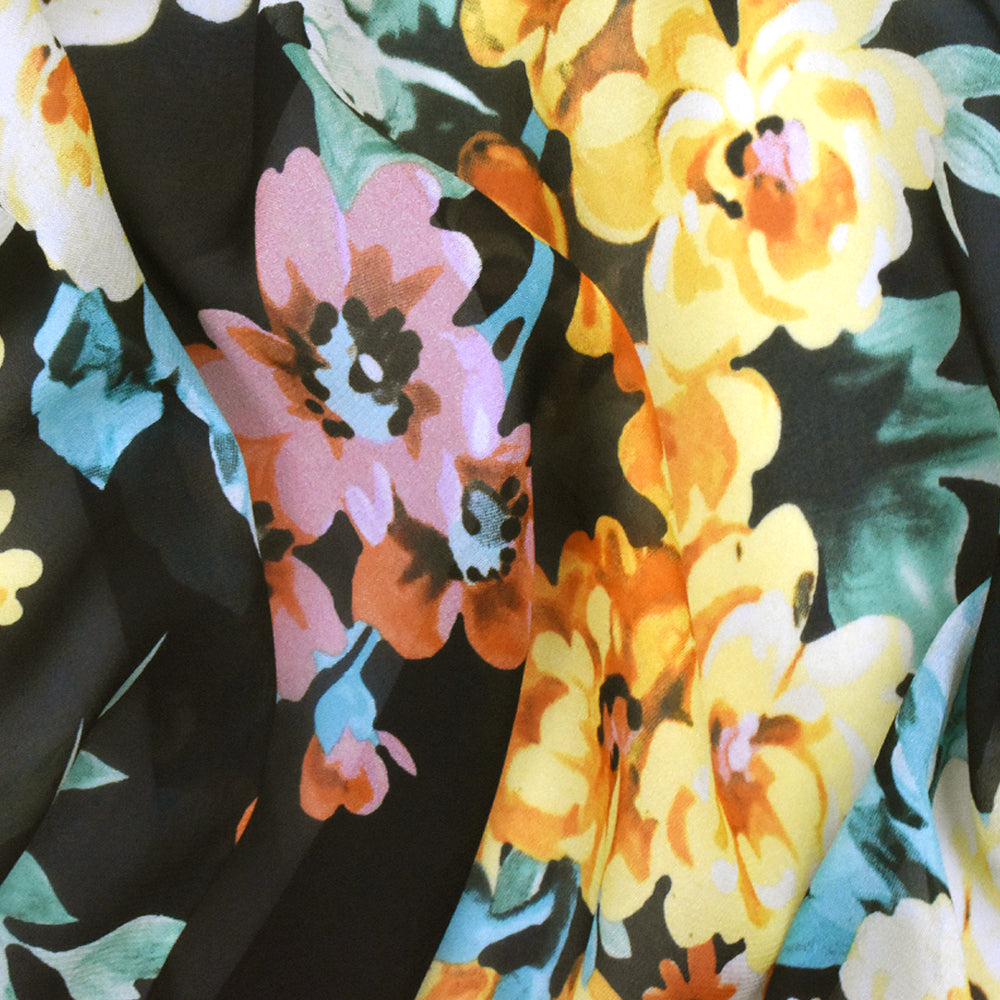 Black-Multi Famous Designer Floral Print Viscose Chiffon Woven Fabric