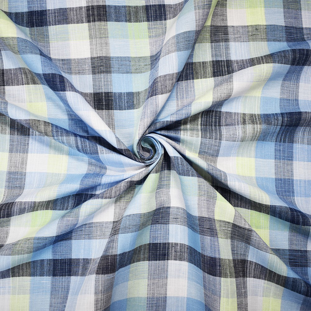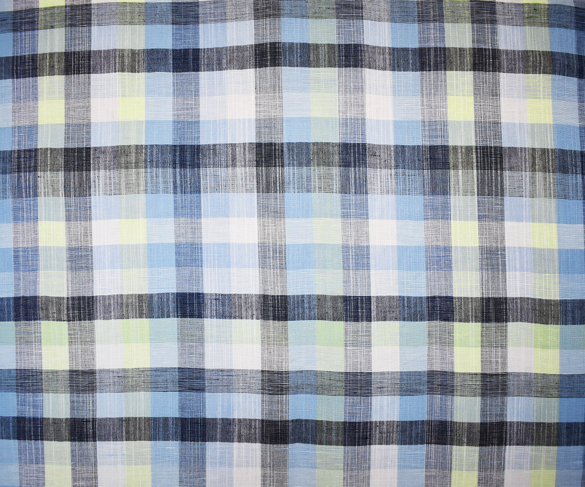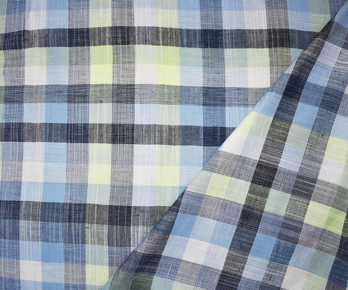 Blue-Yellow-Multi Cotton Famous Maker Plaid Check Slub Woven Fabric
