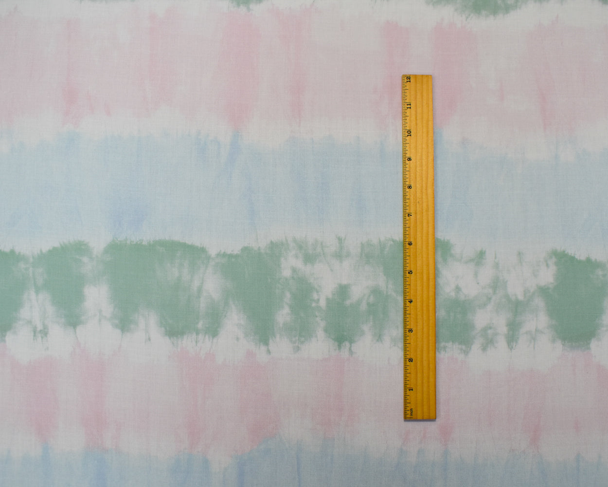 -100% Rayon famous maker woven fabric printed with a tie-dye pattern in a horizontal striped arrangement
