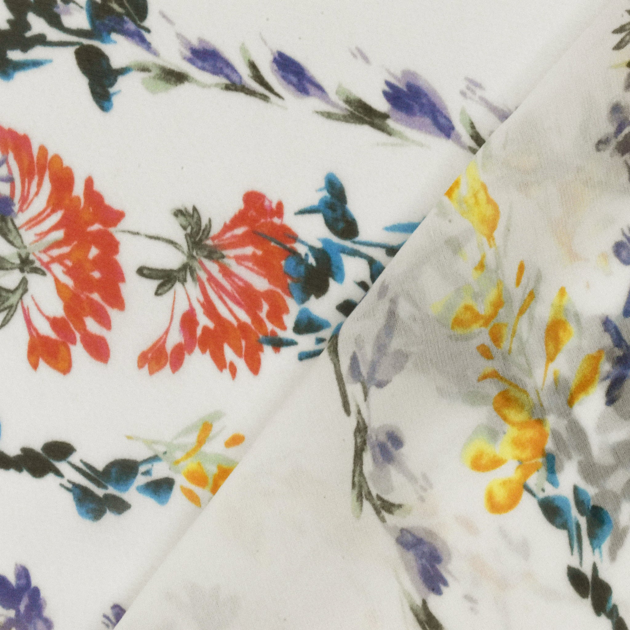 Ivory-Lavender-Multi Floral Border Frame Printed Silk Chiffon Fabric