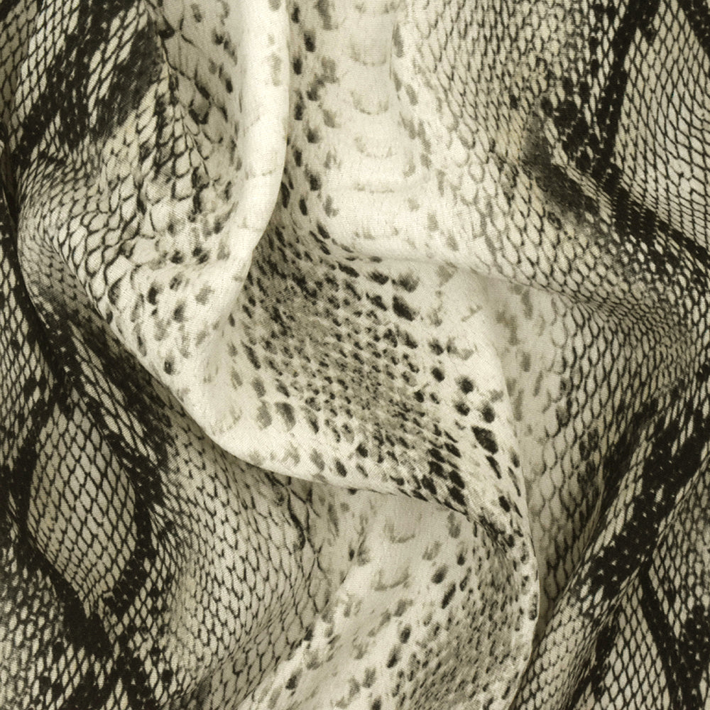 -Famous designer rayon crepe faille woven fabric printed with a snake-skin pattern