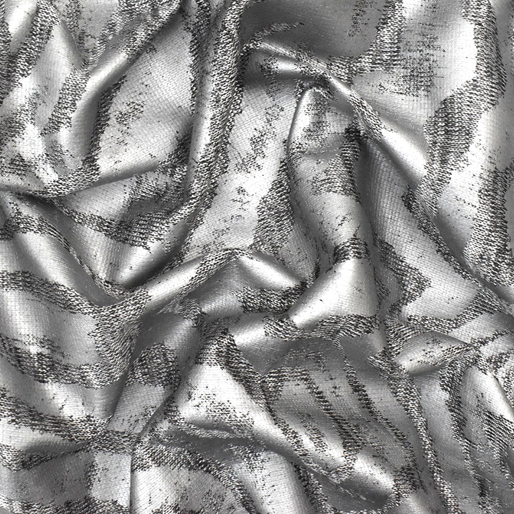 Metallic Silver-Black Tiger Printed Stretch Jersey Knit Fabric