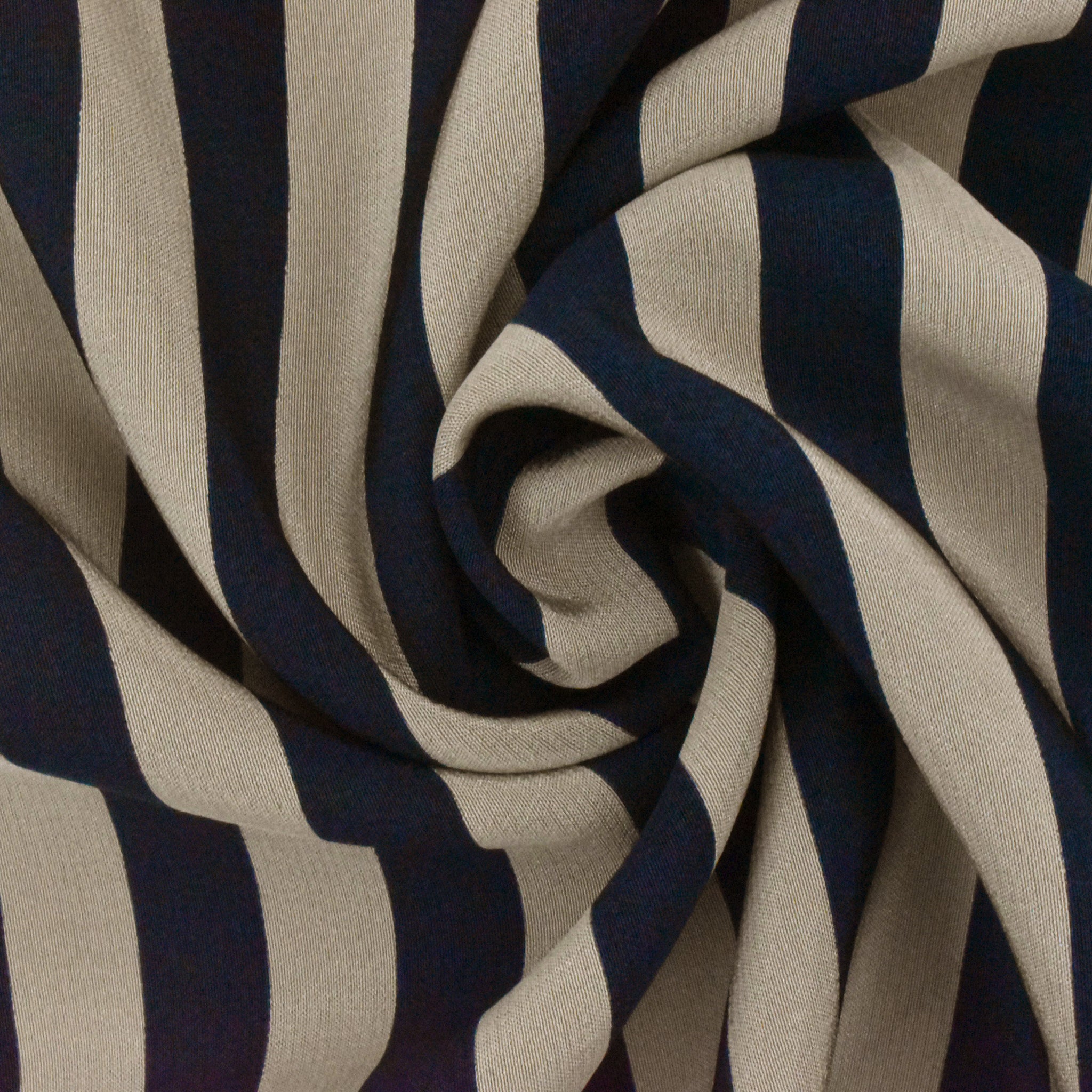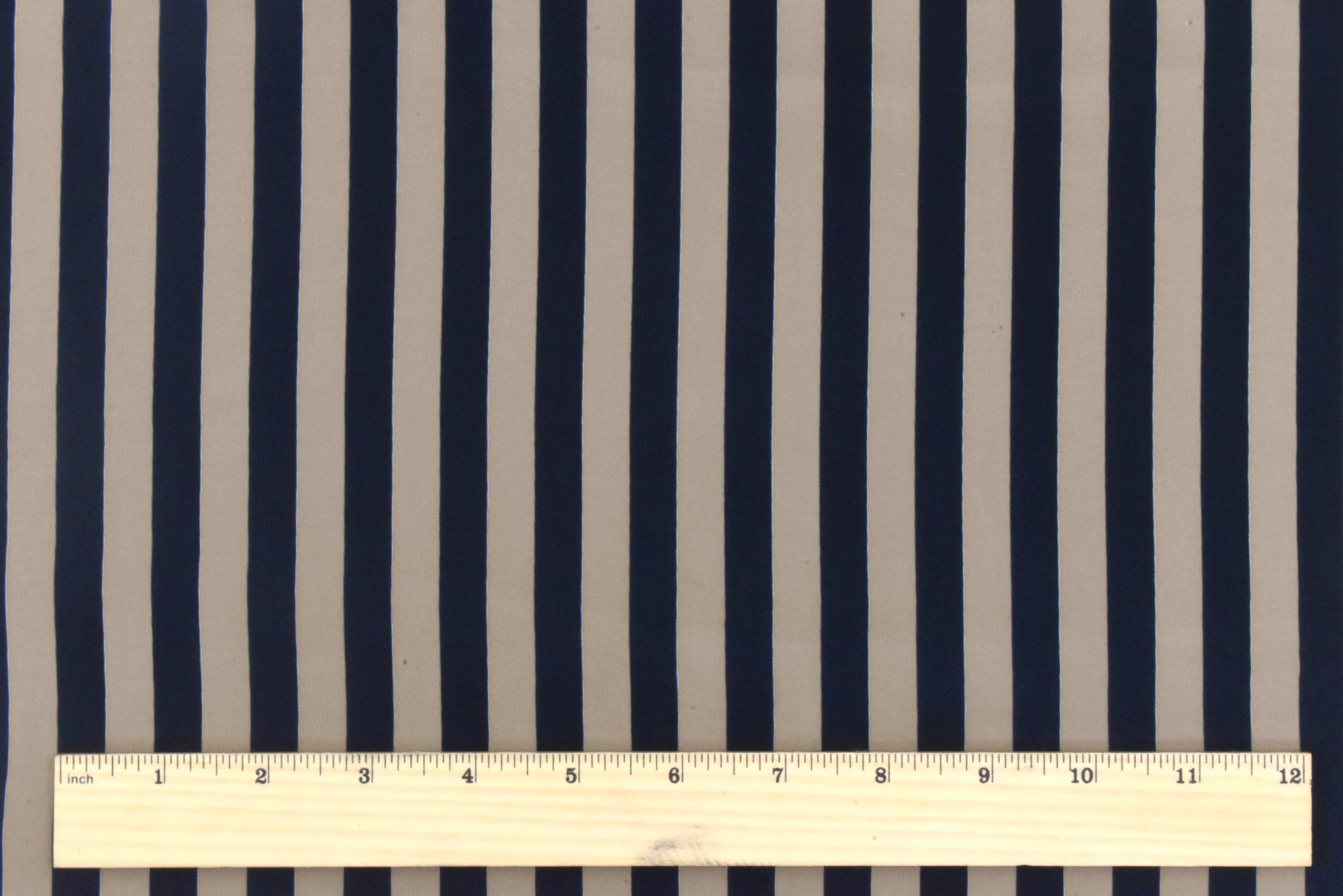 Navy Blue-Taupe Stripe Printed Silk Crepe De Chine Fabric