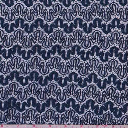 Navy Squiggle Lace Fabric