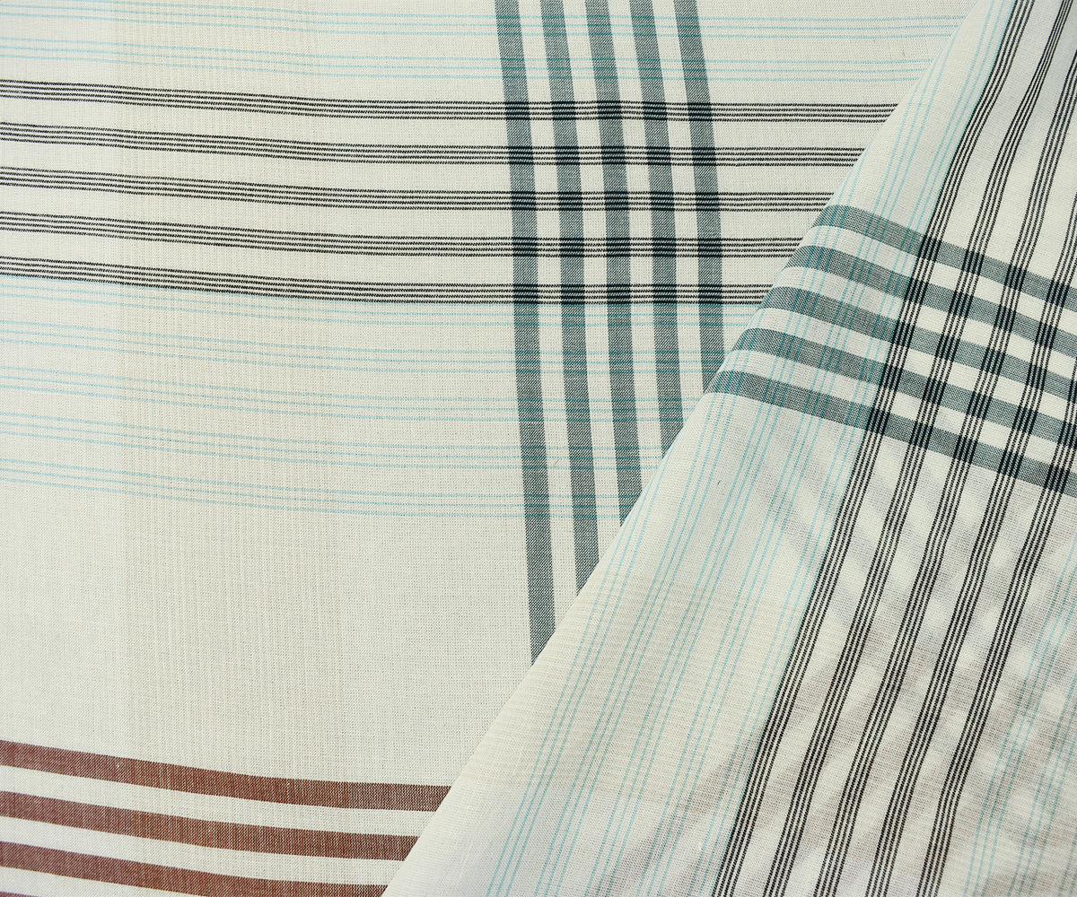 Off-White-Teal Multi Cotton Famous Maker Plaid Gauze Woven Fabric