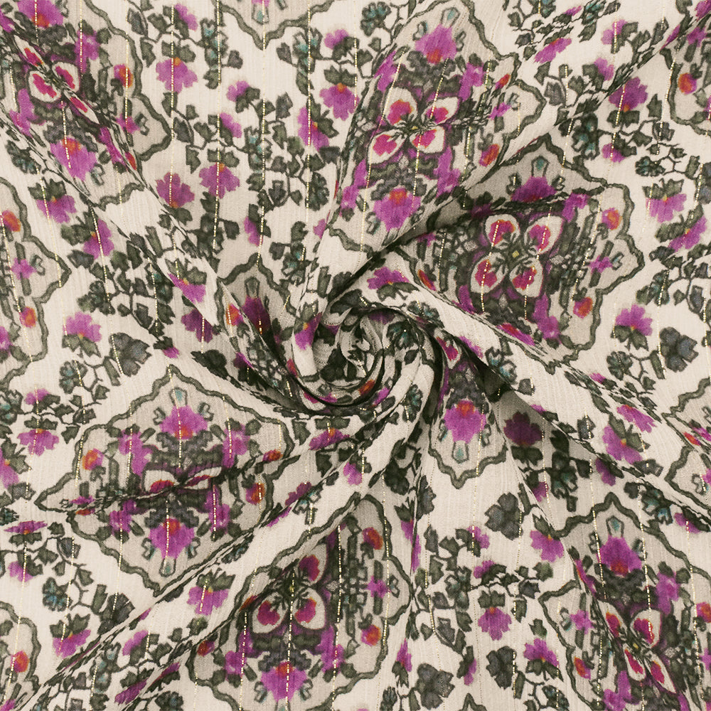 Purple-Multi Famous Designer Viscose Silk Printed Crinkled Chiffon Fabric