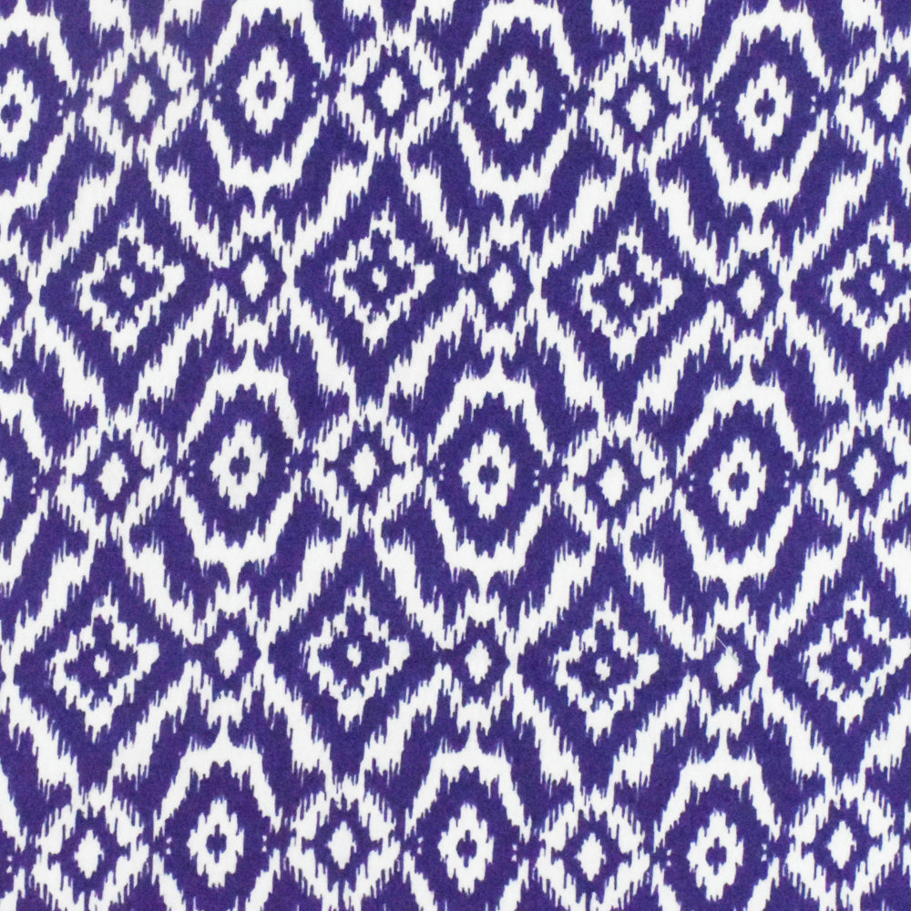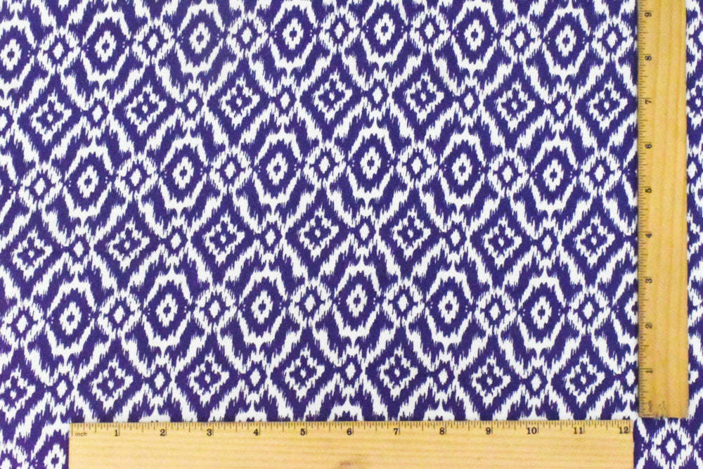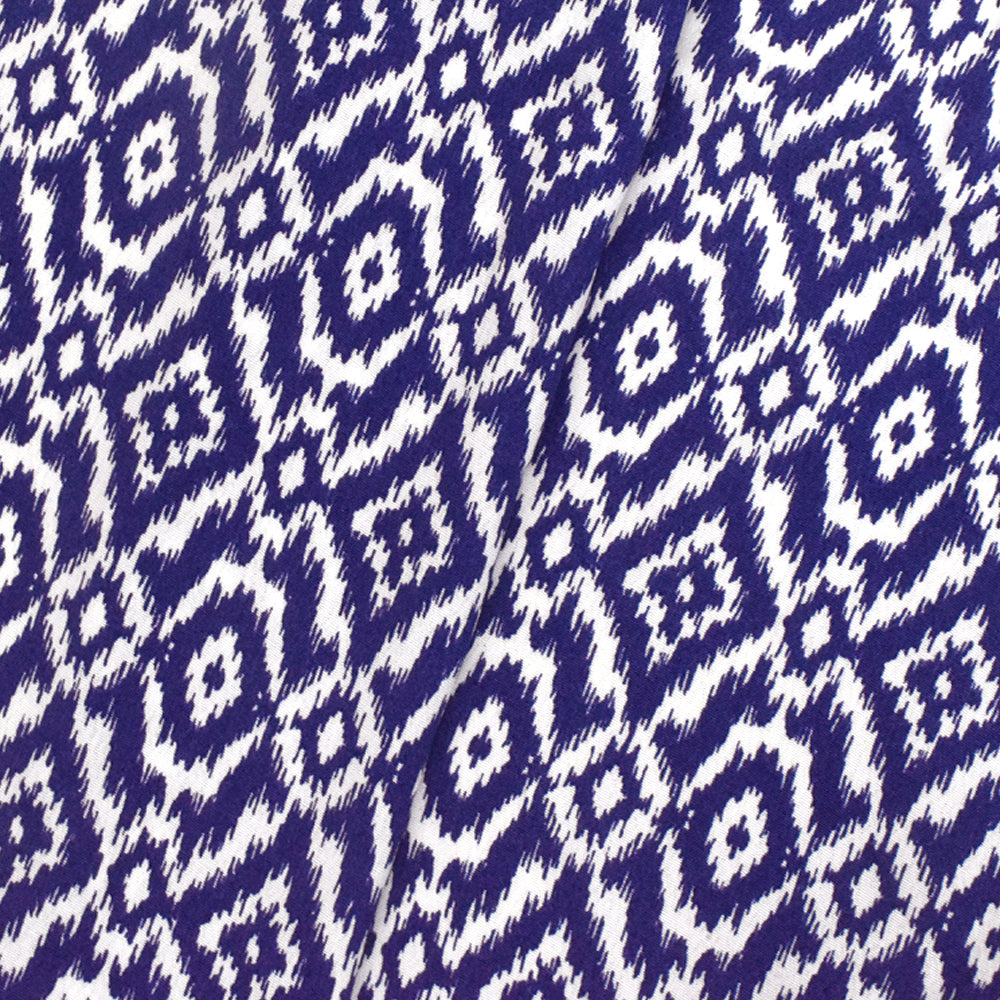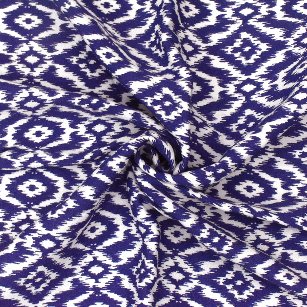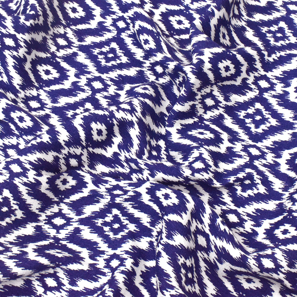 Royal Blue-White Ikat Printed Rayon Crepe Faille Woven Fabric