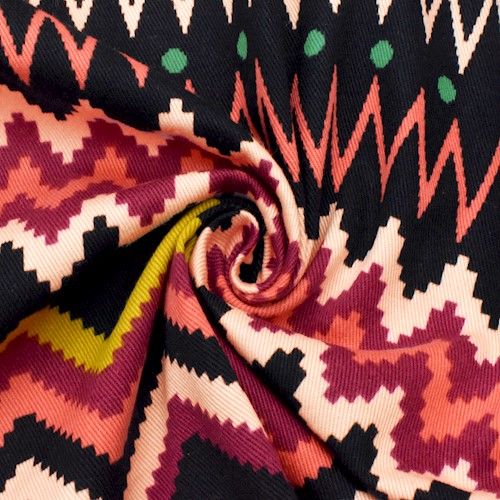 -Multi-abstract chevron geometric pattern printed on a cotton twill woven fabric