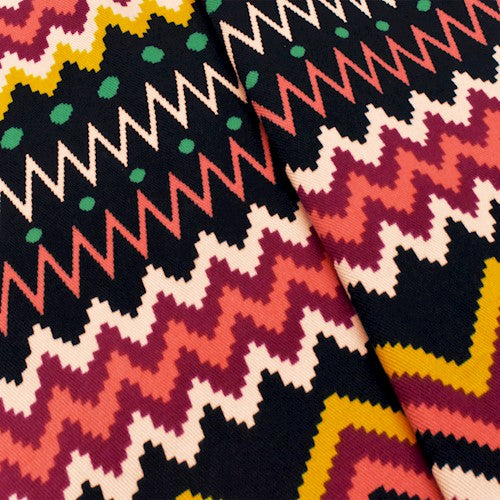 Black/Multi Cotton Geometric Chevron Printed Twill Fabric