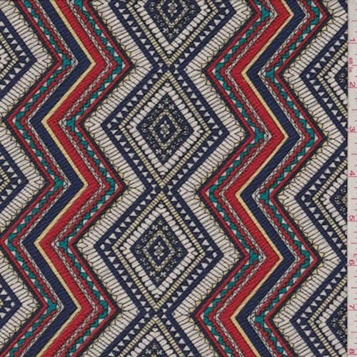Ivory/Fire/Navy Zig Zag Crepe Knit Fabric