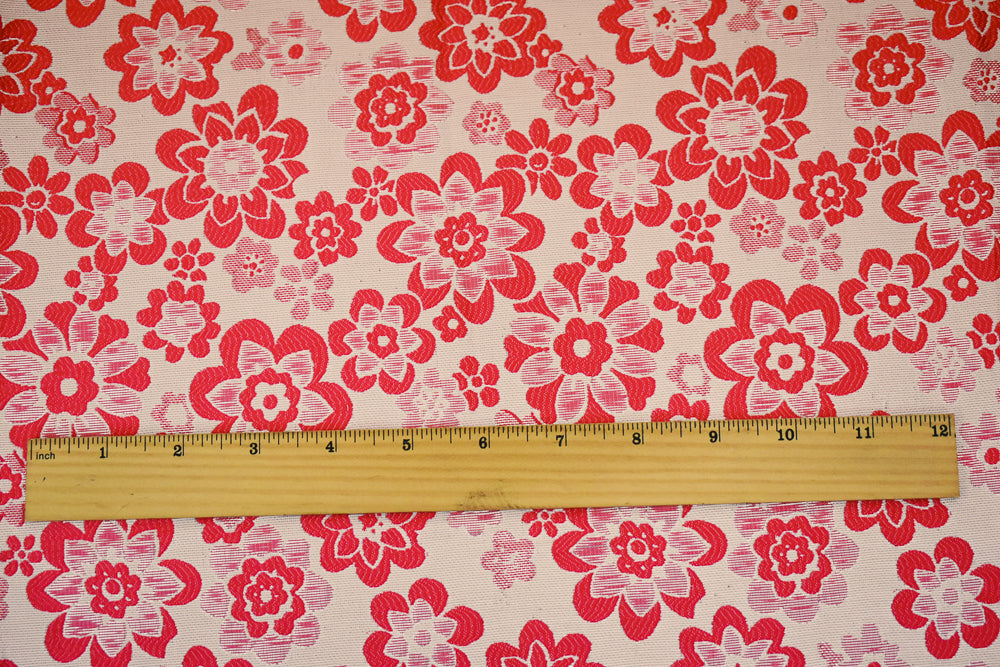 Pink-Silver-Beige Polyester Blend Metallic Floral Jacquard Brocade Woven Fabric