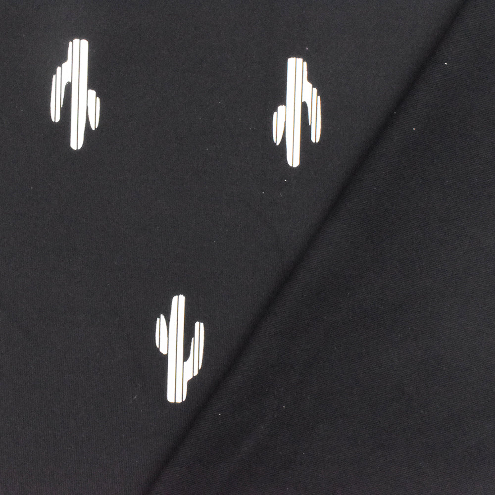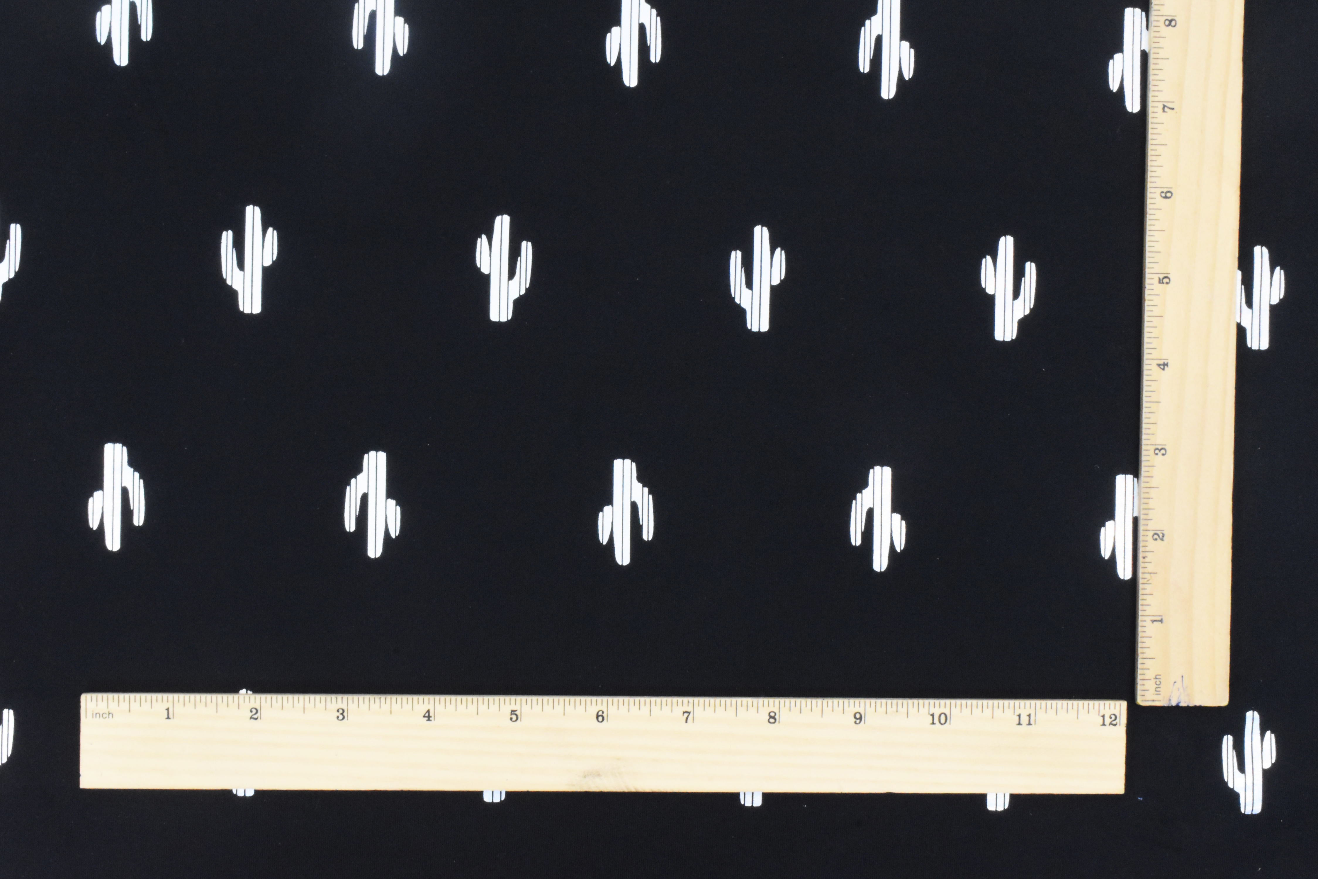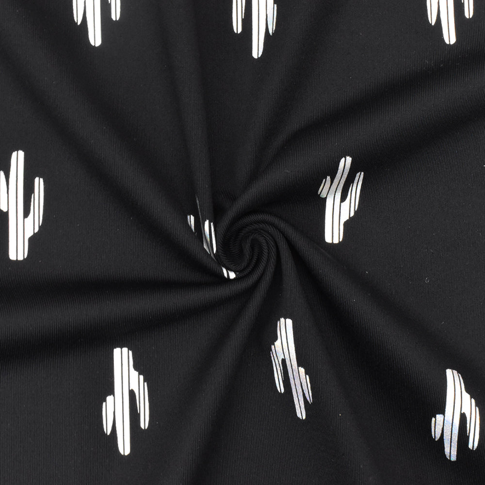 Black-Silver Famous Maker Cactus Print Stretch Tricot Swimwear Knit Fabric