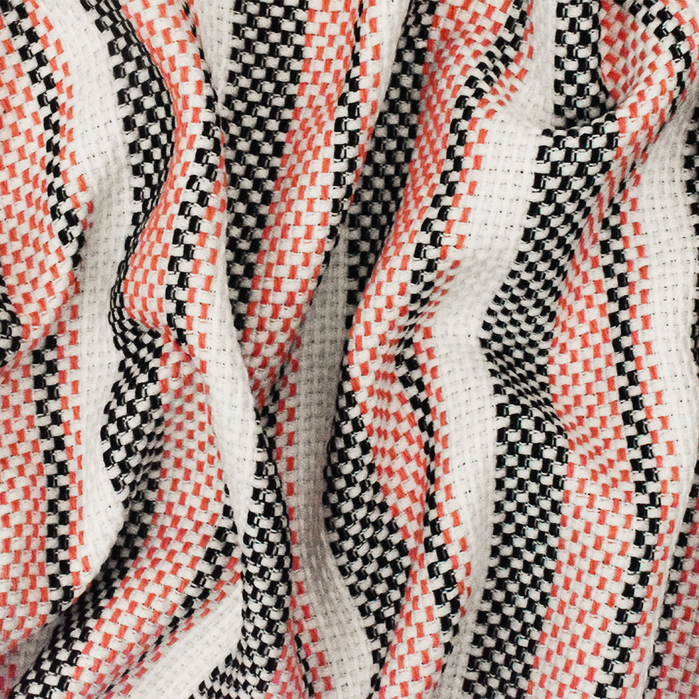 Bright Orange-Black-White Stripe Poly-Linen Dobby Woven Fabric