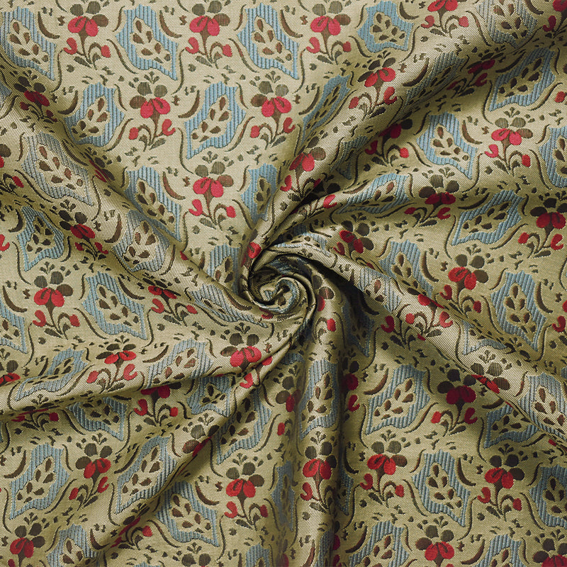-100% polyester jacquard woven fabric with an abstract shapes and floral elements