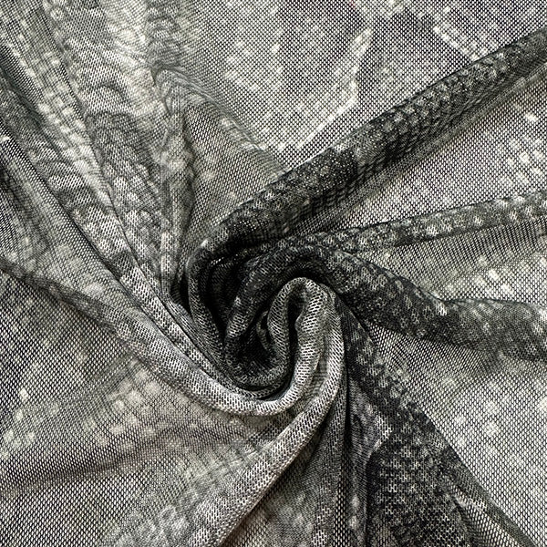 Gray Multi Snakeskin Print Stretch Mesh Fabric